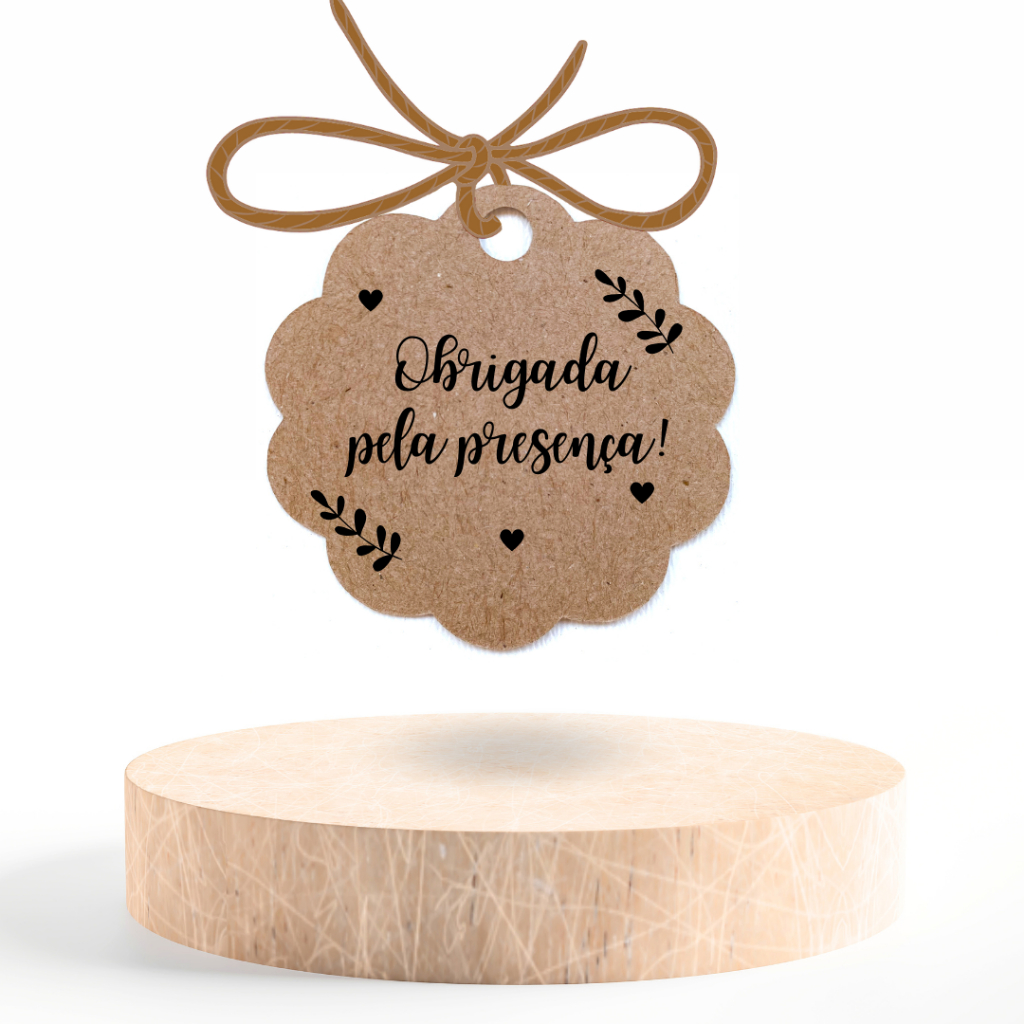 Tag KRAFT para lembrancinhas Obrigada pela presença- flor