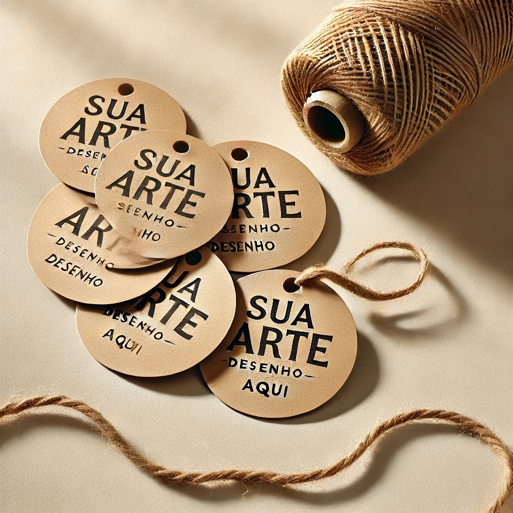 Tag Kraft Redonda PERSONALIZADA Com Cordão Juta Sisal 50 unidades