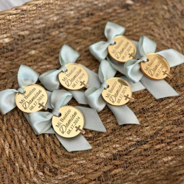 Tag Lembrancinha Personalizada 2,5cm | Batizado Maternidade e Lojas | Acrílico Espelhado