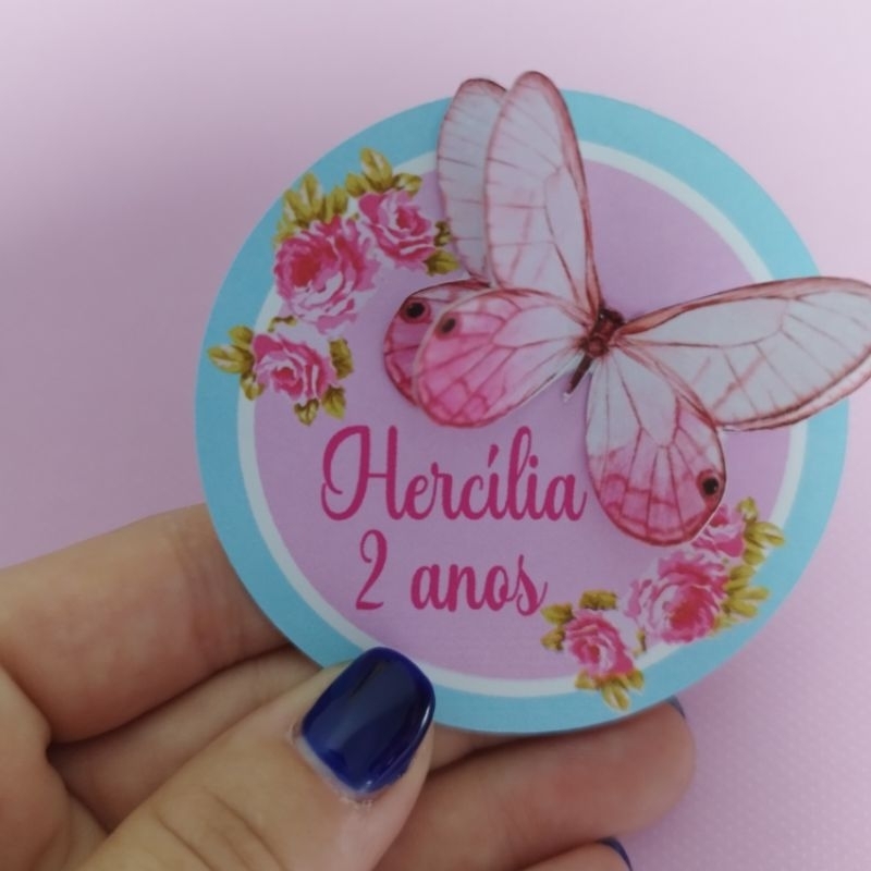 TAG para esfera acrílico 6,5 cm personalizado tema jardim encantado borboleta dupla