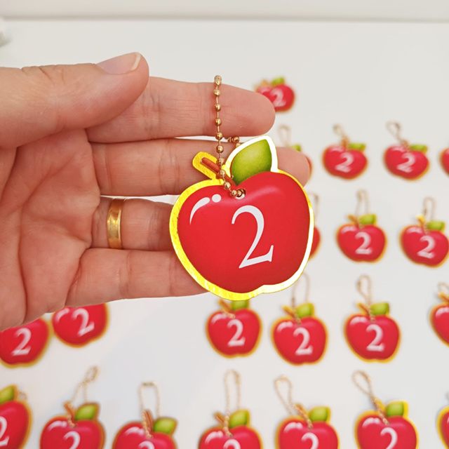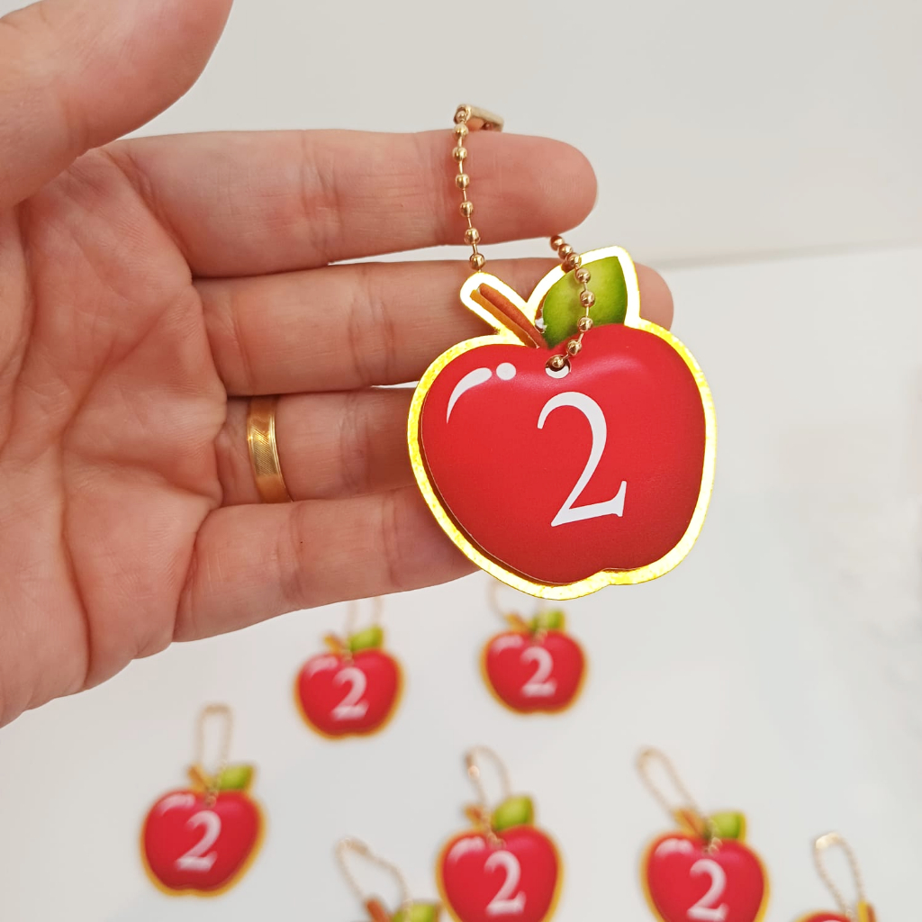 Tag personalizada com correntinha | Maçã | Branca de Neve | MONTADAS | Lembrancinhas Kit de Tags com aplique 3D e correntinha no formato de maçã da Branca de Neve. Caso deseje outro tema, basta chamar a gente no chat! Já vão montadas! - Tag: 4cm - Correntinha aberta 8cm e fechada 4cm - Feitas em papel 180g ATENÇÃO: Para personalização da tag, envie IMEDIATAMENTE nome e idade da criança pelo chat ou as tags serão enviadas APENAS com o TEMA e escrito obrigado pela presença, sem nome e idade.