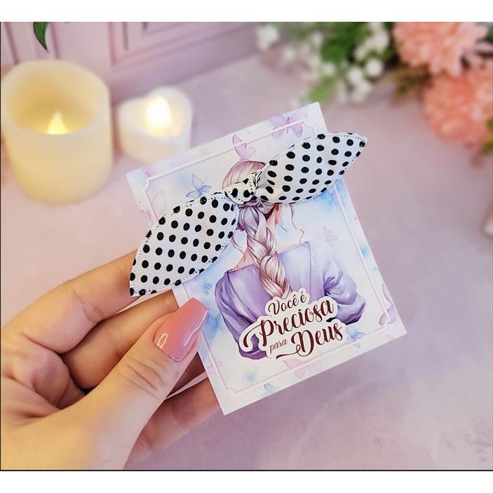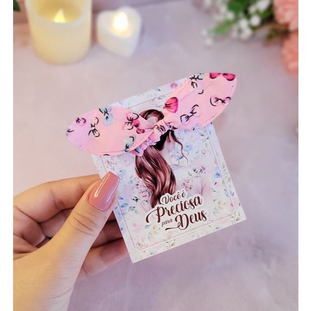 Lindas Lembrancinhas para dar de presente para suas clientes e para eventos da igreja! Acompanha a Tag e a xuxinha *** Não mudamos a arte! Qualquer dúvida entrar em contato via chat Cores das xuxinhas variadas (nao podendo escolher) Tamanho da Tag 9,5 x 7,5 cm Papel Offset 180g durinho!