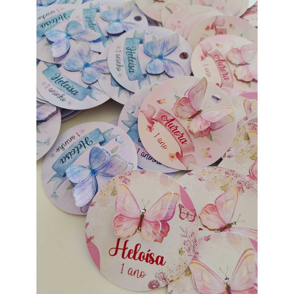 Tags Agradecimento 3D jardim encantado borboletas 15 anos debutante