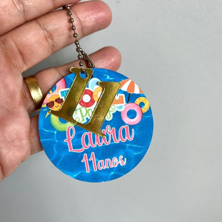 Tag personalizada com correntinha um mimo cheio de encanto pra celebrar momentos únicos- ideal para aniversários, batizados, chás de bebe ou festas temáticas. Detalhes do produto: *NÃO É CHAVEIRO* *Tag redonda com 5cm de diametro em papel fosco 180gr com aplique em papel dourado recortado, trazendo profundidade e delicadeza. *Numero dourado metalizado, que adiciona um toque de delicadeza *Acompanha corrente bolinha, perfeita para pendurar em lembrancinhas, chaveiros ou mochilas *Pode ser personalizada com nome da criança ou a frase ‘Obrigada pela presença’ Personalização: Após a compra envie no chat: *Nome da criança ou se vai ser a frase *Tema da festa Pronta pra encantar! Produzimos com todo o carinho para deixar sua comemoração inesquecível! DISPONÍVEL EM DIVERSAS CORES E TEMAS.
