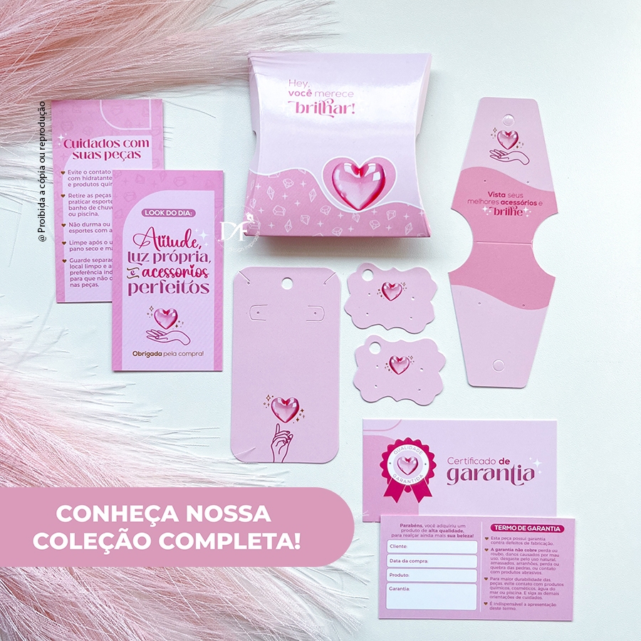 Tag/cartela premium colar + brinco | joias, semijoias ou acessórios. Agregue valor às suas peças com nossas tags exclusivas! -- ARTE EXCLUSIVA -- PRONTA ENTREGA As tags são exatamente como está nas fotos, não é possível personalizações adicionais. Tamanho aproximado: 9x5 cm Papel: couchê 300gr. (papel grosso) Acabamento: verniz total frente Impressão: frente e verso 25 ou 50 unidades * Os impressos poderão apresentar variação de intensidade e tonalidade das cores, em relação ao monitor.