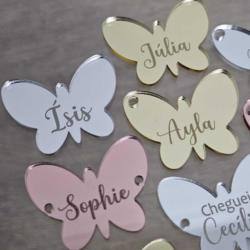 TAGS de Nomes Apliques Acrílico Para Laços E Tiara Borboleta 3,4cm