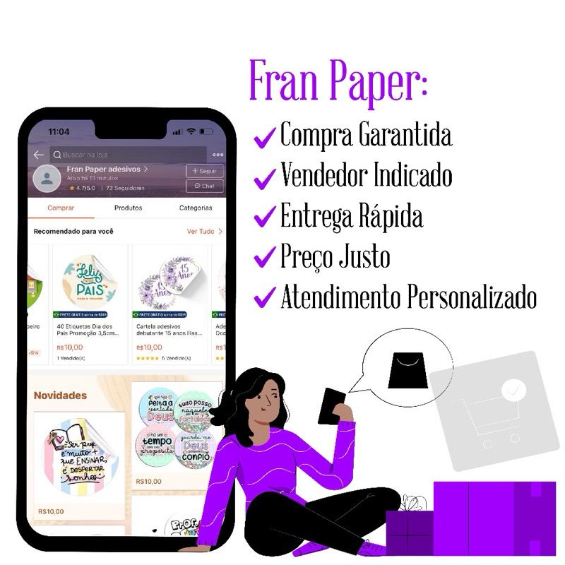 - Vendido por loja bem avaliada (Fran Paper adesivos — 4.9/5)