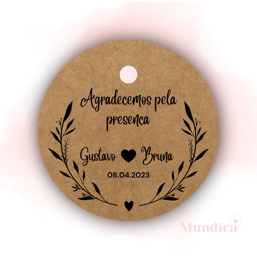 PRAZO DE ENVIO: ATÉ 2 DIAS ÚTEIS PARA POSTAGEM APÓS CONFIRMAÇÃO DO PAGAMENTO. Quantidade: 80 unidades Impressão apenas FRENTE Papel Kraft 200g Corte à máquina Tags NÃO adesivada Tamanho: 5x5cm com furo *Não acompanha cordão ———————————————————————— IMPORTANTE SABER: * Escolha entre os modelo nas variações * Após realizar a compra e o pagamento estiver aprovado nos envie IMEDIATAMENTE os nomes e a data. * Fique atento as mensagens do vendedor; * Quanto mais rápido enviar os dados e aprovar, mais rápido a compra será despachada; * Impressão somente frente (não trabalhamos com frente e verso); * O PAPEL utilizado é o KRAFT 200g. - > Para comprar mais de um modelo e/ou quantidade, basta selecionar sua primeira opção com modelo e quantidade e inserir ao carrinho de compras, feito isso ele irá desmarcar para uma nova opção de compra, com o modelo anterior já inserido em seu carrinho. ATENÇÃO: Existe uma variação natural de tons de cores durante o processo de impressão. Esta variação é de 10%, para mais ou para menos. Considere essa variação na montagem ou modelo a ser impresso. Telas de celulares e computadores realçam as cores das arte.