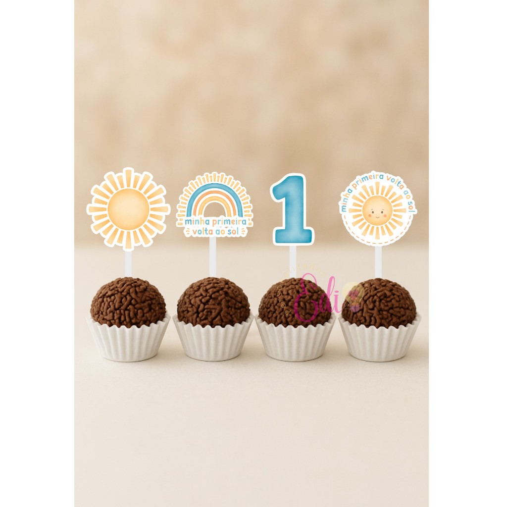 Tags para Doces minha primeira volta ao sol Topper Festa Infantil 1 ano Brigadeiro Cupcake