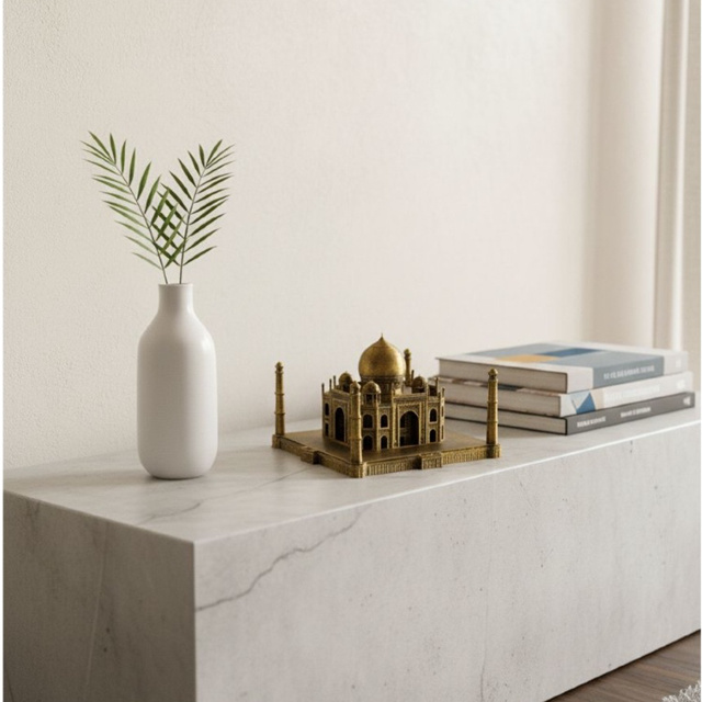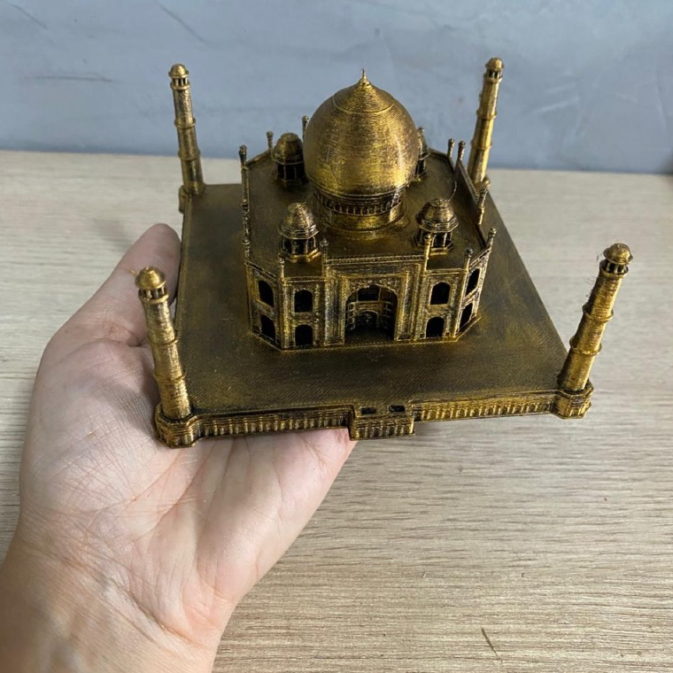 Transforme seu ambiente com um dos monumentos mais famosos do mundo! Esta miniatura decorativa do Taj Mahal é ideal para quem ama arquitetura, viagens, cultura e peças sofisticadas de decoração. Produzida em PLA resistente, possui acabamento dourado com efeito metálico, valorizando cada detalhe da construção e trazendo elegância para qualquer espaço. ✨ Detalhes do Produto: 📐 Dimensões: 11 cm (comprimento) x 11 cm (largura) x 7 cm (altura); 🧱 Material: PLA de alta resistência; 🎨 Acabamento: Pintura premium dourada com aspecto metálico; 🏠 Uso: Decoração de salas, escritórios, estantes, mesas ou nichos; 🎁 Ideal para presente – sofisticado e cheio de significado. 🌍 Sobre o Taj Mahal: Símbolo do amor eterno e da arquitetura mundial, o Taj Mahal é uma peça que carrega história, beleza e elegância, perfeita para quem busca uma decoração com personalidade. 📦 Produto artesanal – pode apresentar pequenas variações que tornam cada peça única. 📸 As cores podem variar levemente conforme a iluminação das fotos.