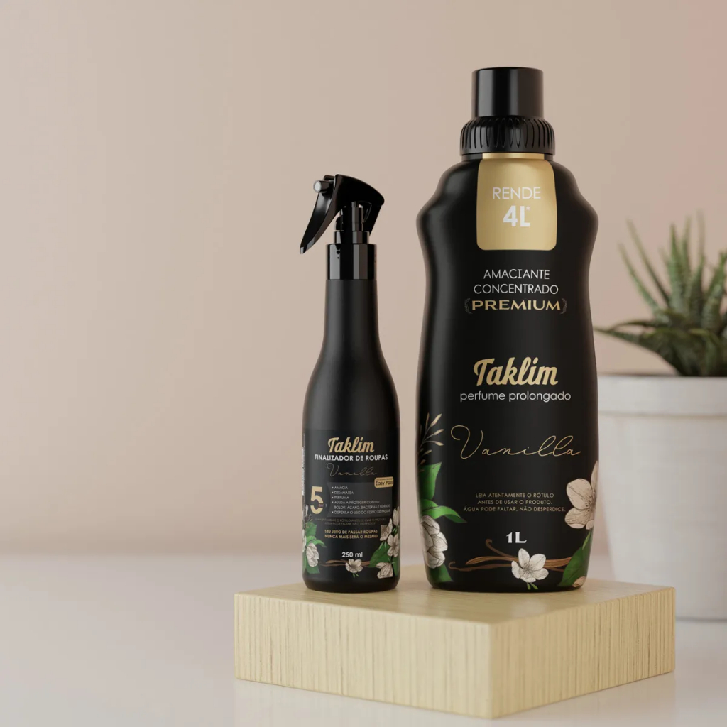 Amaciante Premium Concentrado Taklim – Perfume Intenso e Toque Aveludado O Amaciante Concentrado Taklim Premium foi desenvolvido para quem busca roupas mais macias, perfumadas e com cuidado superior das fibras. Sua fórmula concentrada oferece alto rendimento, ideal para uso doméstico ou profissional, com uma fragrância sofisticada de baunilha que permanece por mais tempo nos tecidos. Características do produto: Marca: Taklim Linha: Premium Tipo: Amaciante concentrado Fragrância: Vanilla (baunilha), Breeze, Memories, Sublime Rende Alto poder de amaciamento Perfume intenso e duradouro Rendimento superior por litro Toque macio e aveludado nas roupas Indicado para: Uso em roupas do dia a dia Lavanderias domésticas e profissionais Tecidos delicados e peças de cama, mesa e banho Benefícios: Facilita o passar das roupas Prolonga a durabilidade dos tecidos Perfuma com elegância e suavidade Fórmula eficiente com menor quantidade por lavagem