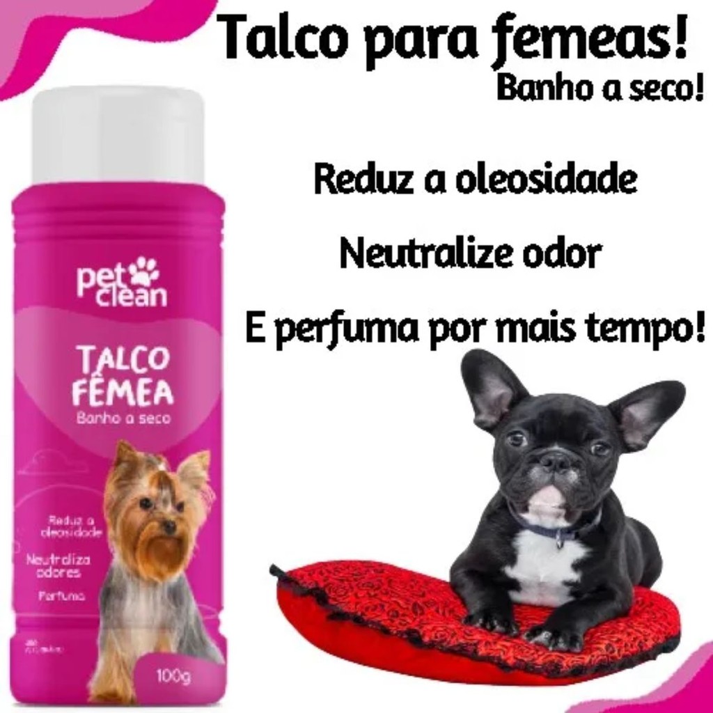 Talco Banho à Seco Fêmea para Cães 100g - Pet Clean