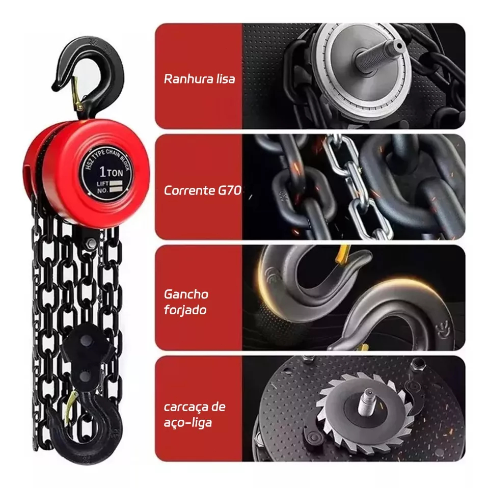 Talha Manual Guincho De Corrente Aço Forjado,3m 1tone