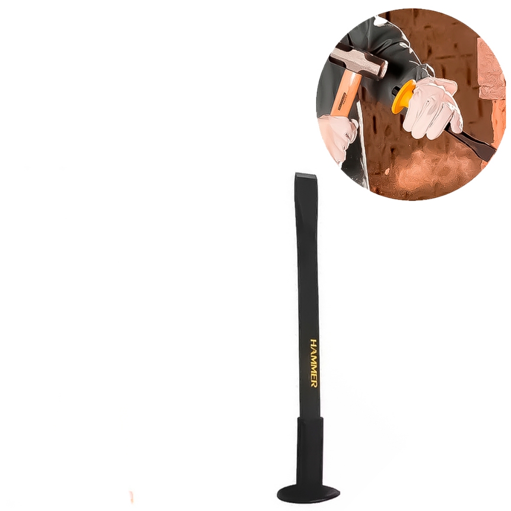 COMERCIAL VIPASA DISTRIBUIDORA. Talhadeira Manual Com Empunhadura Protetor Emborrachado 300mmX25mm Aço Carbono A Talhadeira Sextavada com Protetor da Sparta, é ideal para retirar excesso de material, quebrar alvenaria e concreto, cortar alguns tipos de chapas, dentre outras utilidades. Ideal Para construção, reparos pequenos, entre outros. Tamanho: - 300 X 25 MM Material: Aço Carbono, Cabo plástico A talhadeira manual com empunhadura protetora emborrachada é uma ferramenta robusta e prática, ideal para trabalhos de demolição, corte e cinzelamento de materiais como concreto, pedra e alvenaria. Com 300mm de comprimento e 25mm de largura, esta talhadeira é fabricada em aço carbono de alta qualidade, oferecendo durabilidade e desempenho superior. Detalhes do Produto: Comprimento: 300mm Largura da Lâmina: 25mm Material da Lâmina: Aço carbono de alta resistência Empunhadura: Protetora e emborrachada para maior conforto e segurança Cor: Preto com empunhadura geralmente colorida para fácil identificação Uso: Manual, sem necessidade de energia elétrica ou bateria Benefícios: Durabilidade: Aço carbono de alta qualidade garante longa vida útil e resistência ao desgaste. Segurança: Empunhadura emborrachada proporciona maior controle e reduz o risco de acidentes, além de proteger as mãos do usuário. Conforto: Design ergonômico que minimiza a fadiga durante o uso prolongado. Precisão: Ideal para cortes precisos e trabalhos detalhados em materiais duros. Versatilidade: Adequada para uma ampla variedade de tarefas em construção, reforma e demolição. Aplicações: Construção Civil: Demolição de paredes, corte de concreto e remoção de azulejos. Reformas: Remoção de revestimentos antigos, abertura de canaletas e ajustes em alvenaria. Artesanato: Trabalhos detalhados em pedra e outros materiais duros para projetos artesanais. Manutenção Geral: Utilizável em tarefas de reparo e manutenção que envolvem a quebra e o corte de materiais duros. Modo de Uso: Preparação: Escolha a talhadeira adequada para o tipo de material e trabalho específico. Posicionamento: Coloque a lâmina da talhadeira sobre a superfície a ser trabalhada. Impacto: Utilize um martelo adequado para golpear a parte superior da talhadeira, aplicando força suficiente para cortar ou quebrar o material. Controle: Segure a empunhadura emborrachada firmemente para direcionar a lâmina com precisão e segurança. Repetição: Repita os golpes conforme necessário, movendo a talhadeira ao longo da linha de corte desejada. Cuidados: Manutenção: Limpe a talhadeira após cada uso para remover detritos e evitar corrosão. Armazenamento: Guarde em local seco e seguro, longe de umidade e produtos corrosivos. Inspeção: Verifique regularmente a condição da lâmina e da empunhadura. Substitua a ferramenta se houver sinais de desgaste significativo ou danos. Recomendações: Equipamento de Proteção: Utilize óculos de segurança, luvas e calçados de proteção ao operar a talhadeira. Uso Adequado: Evite utilizar a talhadeira em materiais para os quais ela não foi projetada, a fim de prolongar a vida útil da ferramenta. Treinamento: Se você for um iniciante, considere receber instruções ou treinamento básico sobre o uso seguro e eficaz de talhadeiras manuais. A talhadeira manual com empunhadura protetora emborrachada 300mm x 25mm em aço carbono é uma ferramenta essencial para profissionais e entusiastas do DIY, oferecendo durabilidade, segurança e eficiência para uma ampla gama de aplicações de corte e demolição. COMERCIAL VIPASA DISTRIBUIDORA.