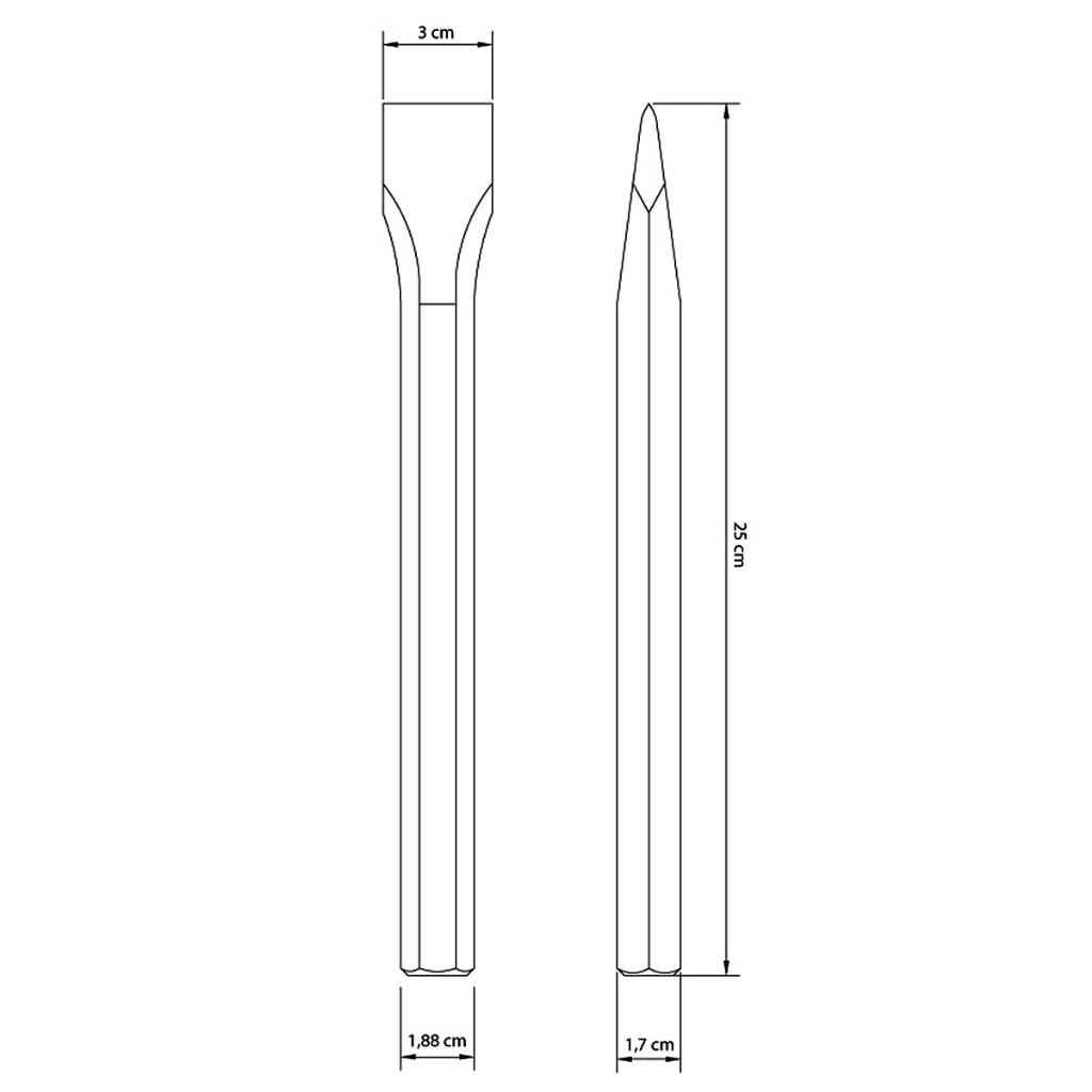 Talhadeira Sextavada 10" 25cm Tramontina Master 42700/110 Descrição do Produto: - Leve a segurança e resistência das ferramentas Tramontina para os seus projetos! - A Talhadeira Sextavada 10 Polegadas Tramontina é a auxiliar perfeita para o corte e abertura de canais em paredes de alvenaria (tijolos); - Garantindo qualidade e fácil manuseio, ela é produzida em aço especial com barra sextavada e possui 10 polegadas; - Um item ideal para quem trabalha na construção civil ou com pequenos reparos! Características: - Corpo em aço especial; - Barra sextavada; - Têmpera por indução nas duas extremidades; - Estas ferramentas de impacto tem dureza diferenciada no gume de corte ou ponta e na face de impacto que será golpeada; - As ferramentas são submetidas a testes de aplicação prática para garantir sua resistência mecânica em uso intenso; - A pintura eletrostática garante proteção excelente contra a corrosão. Dados Técnicos: - Marca: Tramontina Master; - Referência: 42700/110; - Peso: 0,50 kg; - Dimensões do produto: 250x30x17 mm. Componentes Inclusos na Embalagem: - 01 Talhadeira Sextavada 10" 25cm Tramontina Master 42700/110