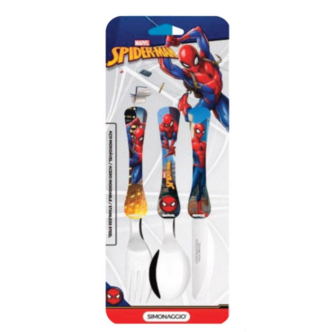 Conjunto de Talheres Infantil 3 Peças – Homem-Aranha (Marvel Disney) Torne as refeições mais divertidas com esse conjunto de talheres infantis estampados com o herói favorito da criançada: o Homem-Aranha! Ideal para o dia a dia, o kit é composto por garfo, faca e colher, com cabos coloridos e anatômicos que facilitam o manuseio pelos pequenos. • Conteúdo: 1 garfo, 1 faca e 1 colher • Peso: 0,05 kg • Dimensões da cartela: 25 cm (C) x 9,3 cm (L) x 1,5 cm (A) • Material: Aço com cabos plásticos decorados • Indicação: Uso infantil – ideal para lancheiras e refeições em casa • Estampa: Personagem Homem-Aranha (licenciado) Observação: Cores e estampas podem variar conforme disponibilidade em estoque. Envio sortido.