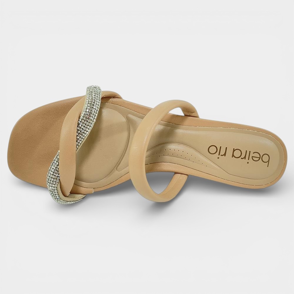Tamanco Beira Rio Strass Salto Baixo - Nude