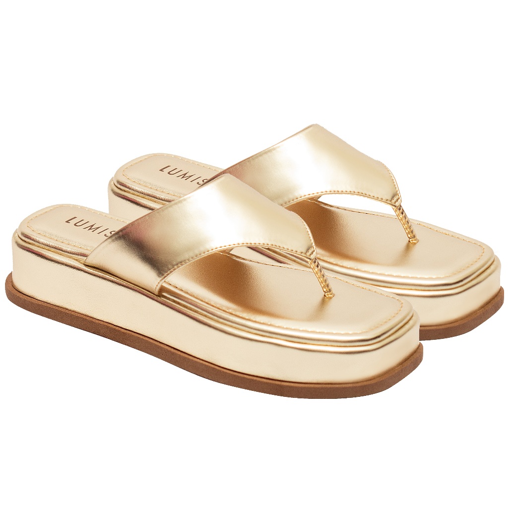 Tamanco Feminino Lumiss Flatform Confortável Dourado