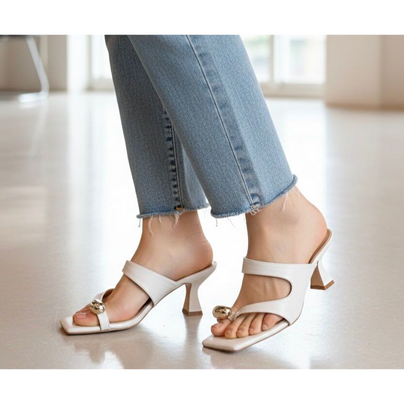 Tamanco Feminino Open Mule Flip com Detalhe Dourado – Elegante, Confortável e Salto Médio T001