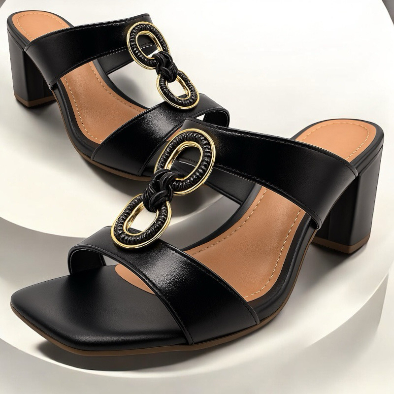 Tamanco Feminino Salto Bloco Médio detalhe em fivela 8 – Sandália Confortável Moderna