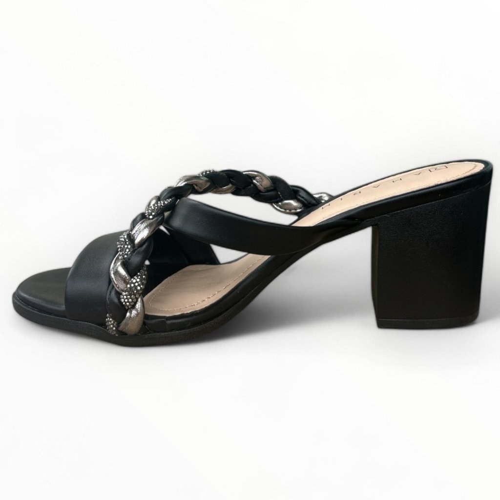 Sandália Salto Bloco com Tira Trançada – Estilo marcante e conforto para todas as ocasiões Moderna, versátil e cheia de personalidade, essa sandália preta é a escolha perfeita para quem busca unir elegância e praticidade. Confeccionada em material sintético de alta qualidade, ela possui tiras largas que garantem firmeza aos pés, com destaque para o trançado superior que mistura textura e brilho de forma sofisticada. O salto bloco de 7 cm oferece a altura ideal para valorizar a silhueta com estabilidade, tornando o modelo ideal para acompanhar looks do dia à noite. A palmilha macia proporciona conforto mesmo após longos períodos de uso, e o design aberto permite que os pés respirem com leveza e estilo. Diferenciais do modelo: Confeccionada em material sintético resistente e de toque suave Salto bloco de 7 cm: elegância com estabilidade para o dia a dia Tira trançada com detalhe brilhante: toque fashion e refinado Palmilha confortável para uso prolongado Design versátil: combina com looks casuais, de trabalho ou eventos noturnos Dica de estilo: combine com vestidos midi, calças de alfaiataria, conjuntos monocromáticos ou jeans de corte reto para um visual moderno e equilibrado. Cuidados com o produto: Limpar com pano macio e levemente umedecido com sabão neutro Evite exposição prolongada ao sol para preservar a cor Não utilizar alvejantes ou produtos abrasivos Armazene em local seco, com enchimento para preservar o formato Evite atrito da tira trançada com superfícies ásperas para manter o brilho