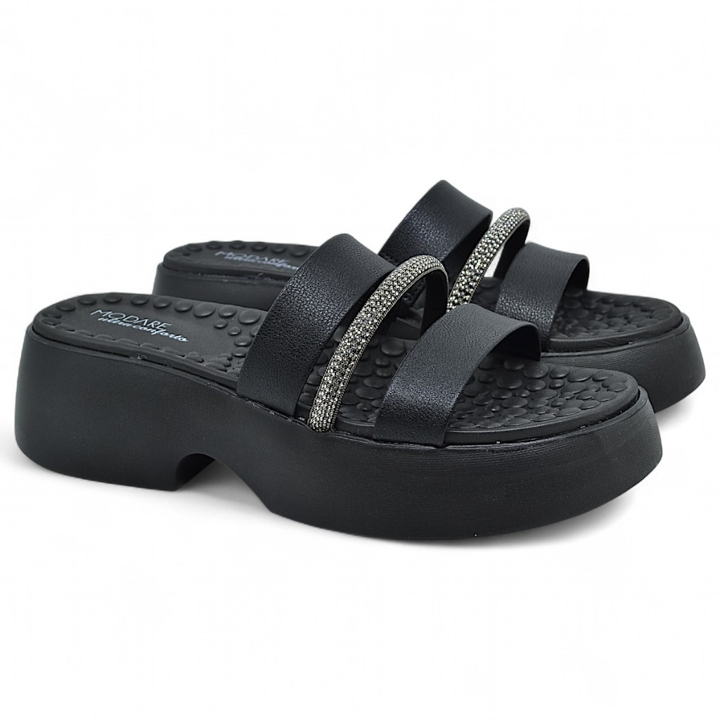 FORMA: Normal (Ver tabela de medidas) CABEDAL: Sintético de alta qualidade PALMILHA: Macia com tecnologia ReflexSense SALTO: 5cm SOLADO: Emborrachado | Antiderrapante ENVIO: Na caixa do fabricante GARANTIA: Contra defeitos de fabricação - 30 dias A Papete Feminina Modare Ultraconforto com Palmilha ReflexSense é a escolha ideal para quem busca aliar conforto terapêutico, estilo moderno e praticidade no dia a dia. Desenvolvida para proporcionar bem-estar ao caminhar, ela é perfeita para quem sofre com dores nos pés, como fascite plantar, esporão e inflamações, sem deixar de lado o visual elegante e contemporâneo. Sua confecção em material sintético de alta qualidade garante excelente durabilidade e resistência, além de ser fácil de limpar e manter. É uma opção perfeita para o uso contínuo, oferecendo longa vida útil mesmo em rotinas intensas e dinâmicas. O design é um dos pontos altos do modelo: com estilo clássico e minimalista, a sandália possui três tiras no cabedal — duas lisas e largas que garantem firmeza e estrutura ao calçado, e uma terceira mais fina com aplicação de brilhos que adiciona um toque de sofisticação e modernidade. Essa combinação faz da papete uma peça versátil, ideal tanto para o uso casual quanto para ocasiões que pedem um visual mais elaborado. Para maior praticidade e conforto no uso diário, a sandália conta com detalhe em elástico na lateral da tira, o que proporciona um ajuste anatômico ao formato dos pés. Esse detalhe garante encaixe perfeito, firmeza e liberdade de movimento sem apertos ou desconfortos. O grande diferencial da papete está na sua palmilha anatômica com tecnologia ReflexSense. Confeccionada em EVA ultramacio, essa palmilha possui esferas massageadoras que estimulam a circulação sanguínea a cada passo, oferecendo alívio para dores e inflamações, além de proporcionar amortecimento e conforto contínuo durante o uso prolongado. Seu salto plataforma de 5 cm garante altura na medida certa, com total estabilidade e equilíbrio. A estrutura reta distribui o peso do corpo de forma uniforme, ajudando a prevenir sobrecargas nas articulações e proporcionando uma caminhada leve e segura. Para finalizar, o solado emborrachado com frisos antiderrapantes oferece excelente aderência, evitando escorregões e garantindo mais segurança em diferentes tipos de superfície. A Papete Modare ReflexSense é a união perfeita entre saúde, conforto e estilo, feita para te acompanhar com leveza em todos os momentos. TABELA DE MEDIDAS Tamanho 34 - 23.6cm Tamanho 35 - 24.2cm Tamanho 36 - 24.8cm Tamanho 37 - 26cm Tamanho 38 - 27.3cm Tamanho 39 - 27.9cm Tamanho 40 - 28.6cm
