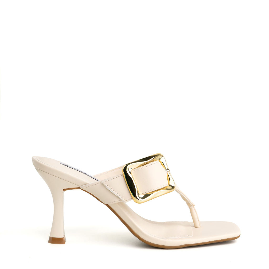 Tamanco Nude Manteiga Salto Taça Enfeite Fivela Ouro 1490.71_2