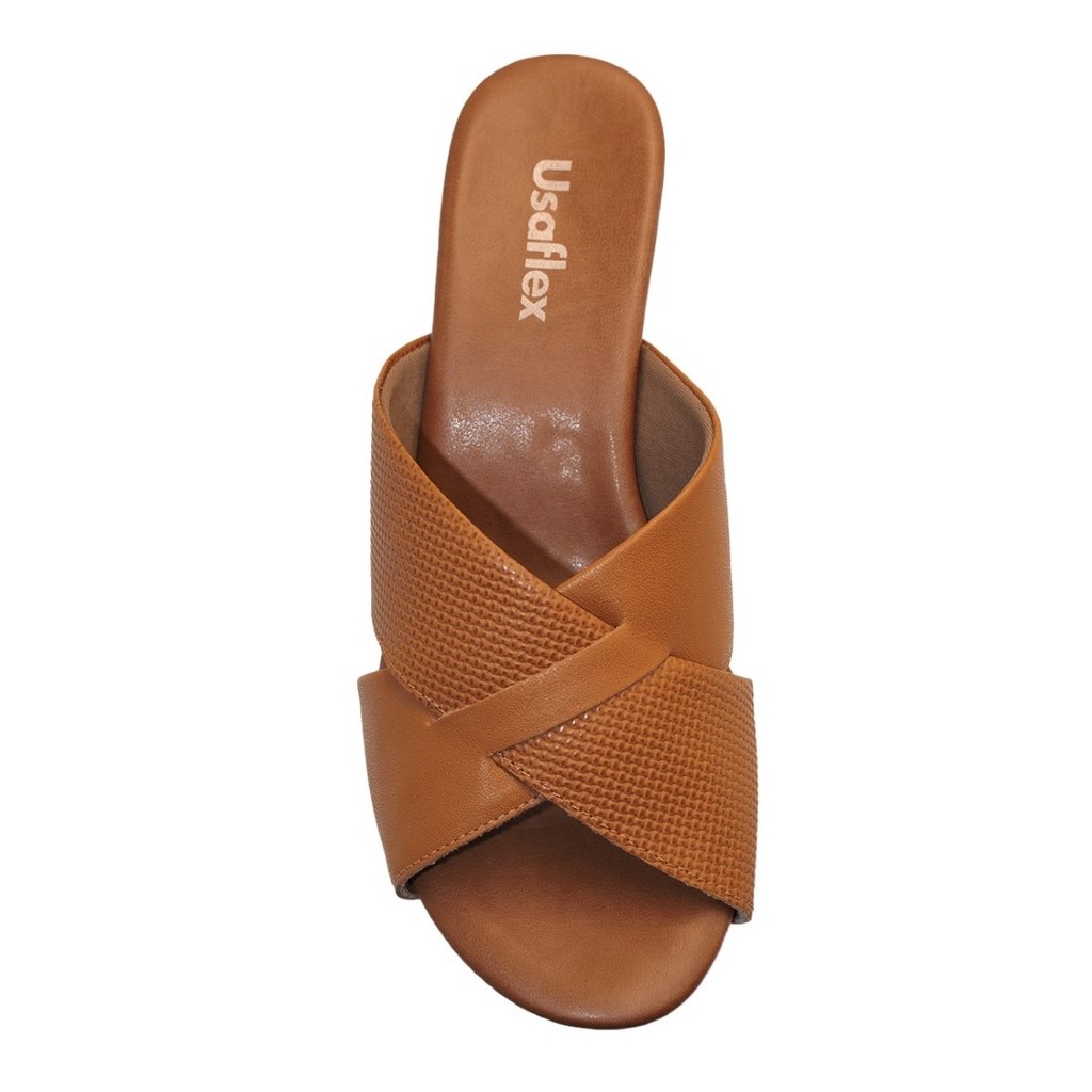 Sinta o conforto renomado da Usaflex com a versatilidade desse Tamanco. Seu modelo é feito em couro macio, para máximo conforto, adaptando-se à ergonomia do pé. Possui as tiras em X com textura na parte superior, é um clássico que traz segurança e um toque de estilo. O forro das tiras é confeccionado em tecido respirável, macio e muito sedoso além de impedir a propagação de bactérias e fungos, evitando alergias e odores. Possui salto bloco, seu solado é resistente e traz a tecnologia Sola+Conforto, que consiste em uma espessura extra para reduzir os impactos de cada passada. Aproveite!