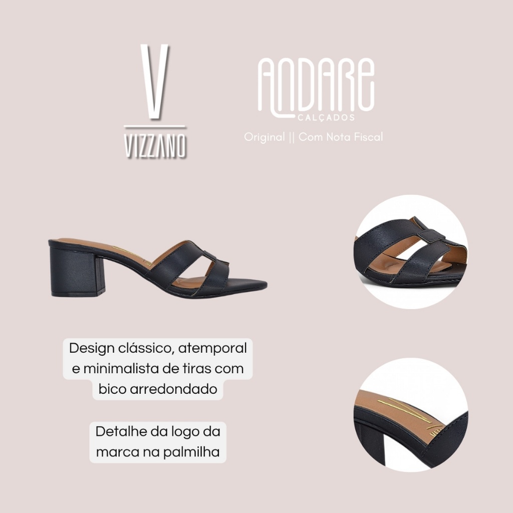 FORMA: Normal (Ver tabela de medidas) CABEDAL: Material sintético de alta qualidade PALMILHA: Anatômica acolchoada em PU FECHAMENTO: Slip On SALTO: 6cm SOLADO: Borracha Antiderrapante ENVIO: Na caixa do fabricante GARANTIA: Contra defeitos de fabricação - 30 dias O Tamanco Salto Bloco Vizzano é a escolha perfeita para quem busca elegância sem abrir mão do conforto. Com um visual sofisticado e ao mesmo tempo versátil, ele combina com diferentes ocasiões – desde produções casuais até composições mais refinadas. Sua proposta une moda e funcionalidade, tornando-o um item indispensável no guarda-roupa de toda mulher que preza por estilo e bem-estar ao caminhar. Confeccionado em material sintético de alta qualidade, o tamanco apresenta excelente acabamento e durabilidade. Seu material foi escolhido especialmente para garantir resistência ao uso diário, mantendo o visual bonito e conservado por mais tempo. A atenção aos detalhes na produção reforça o compromisso da Vizzano com a excelência e o cuidado em cada peça. Seu design clássico e atemporal com tiras no cabedal, aliado ao bico arredondado, imprime feminilidade e charme com discrição. A proposta minimalista e limpa favorece combinações variadas, sendo ideal para diferentes estilos e estações do ano. A presença sutil da logo da marca na palmilha acrescenta um toque de identidade e autenticidade ao modelo. O tamanco possui um formato prático e funcional, dispensando sistemas de fechamento. Basta calçar e sair: um modelo slip-on que proporciona praticidade no dia a dia. O formato com tiras abertas no cabedal garante ajuste suave e liberdade aos pés, ideal para quem preza por facilidade e frescor nos dias mais quentes. Pensando no conforto de cada passo, a Vizzano desenvolveu uma palmilha anatômica acolchoada em PU, que se molda aos pés e oferece excelente absorção de impacto. Esse cuidado especial proporciona bem-estar prolongado mesmo após horas de uso. O interior do calçado também é delicadamente forrado, evitando atritos e garantindo um caminhar macio e confortável. O salto bloco, com aproximadamente 6 cm de altura, é o equilíbrio ideal entre elegância e estabilidade. Ele proporciona um toque moderno ao visual, ao mesmo tempo em que favorece a postura e oferece sustentação ao caminhar. Perfeito para quem deseja altura com segurança e estilo. Por fim, o solado emborrachado com frisos antiderrapantes garante máxima aderência ao solo, tornando o uso mais seguro em diferentes tipos de superfície. Esse detalhe reforça a preocupação com a funcionalidade e a segurança, permitindo que você aproveite cada momento com confiança e leveza. O Tamanco Salto Bloco Vizzano é a escolha certa para quem deseja unir design elegante, conforto superior e qualidade em um único calçado. TABELA DE MEDIDAS Tamanho 34 - 23.4cm Tamanho 35 - 24cm Tamanho 36 - 24.6cm Tamanho 37 - 25.8cm Tamanho 38 - 27cm Tamanho 39 - 27.7cm Tamanho 40 - 28.3cm