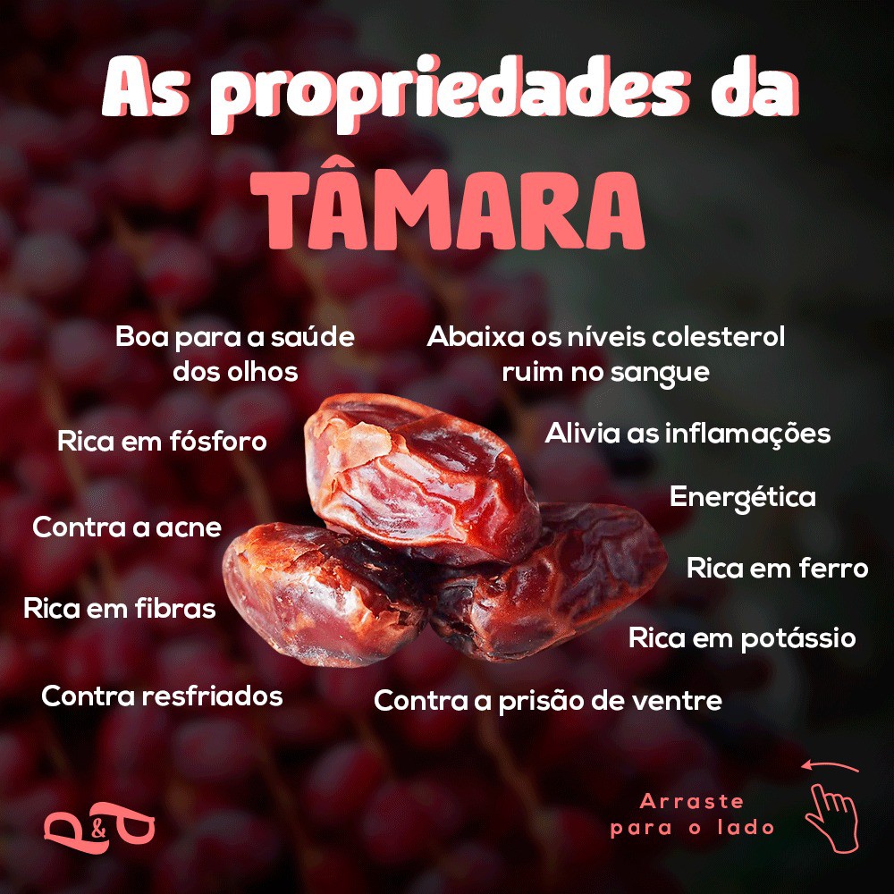 Deliciosas Tâmaras secas, sempre fresquinhas A tâmara é uma daquelas frutas que basta experimentar uma para querer mais e mais. Com origem incerta na região da Ásia, justamente por ser cultivada há milênios, a tâmara tem sabor marcante e exótico, além de ser capaz de trazer extraordinários benefícios para a saúde. Descrição do produto: - Safra Nova (Produto produzido semanalmente, sempre fresco) - Pacote de 1kg, 500g ou 250g - Tâmara Seca e Sem Caroço. A Pronta Entrega. Produto enviado com ampla validade, super novo. Obrigado por comprarem nossos produtos! 😊 DÚVIDAS DE SEMPRE: 1) Em quando tempo meu pedido será enviado? ENVIAMOS O SEU PRODUTO EM ATÉ 24 HORAS APÓS A APROVAÇÃO DO PAGAMENTO. SE O PAGAMENTO FOR CARTÃO É MAIS RAPIDO. SE FOR BOLETO, AS VEZES DEMORA ATÉ 48HS, PARA OCORRER A IDENTIFICAÇÃO. 2) E se meu produto não chegar? TODOS OS PACOTES SEGUEM COM O PROTOCOLO DE RASTREIO, E VOCÊ PODE CONSULTAR DIARIAMENTE NO SITE DOS CORREIOS, PARA VER ONDE ELE ESTA. CASO OCORRA ALGUM SINISTRO, A MERCADORIA ESTÁ ASSEGURADA PELO SISTEMA SHOPEE, E VOCE RECEBE SEU DINHEIRO DE VOLTA. 3) Tem o produto disponível? SIM, TODOS OS PRODUTOS ANUNCIADOS ESTÃO DISPONIVEIS PARA COMPRA. 4) Qual a validade? VOCÊ IRÁ ENCONTRAR A VALIDADE ASSIM COMO O NÚMERO DO LOTE NA PARTE SUPERIOR DA EMBALAGEM. TRABALHAMOS APENAS COM PRODUTOS FRESCOS, DESSA FORMA VOCÊ RECEBERÁ O PRODUTO COM UMA VALIDADE EXTENSA. DEPENDENDO DO PRODUTO, DE ATÉ 2 ANOS. Ficou com alguma dúvida? Entre em contato com a gente!