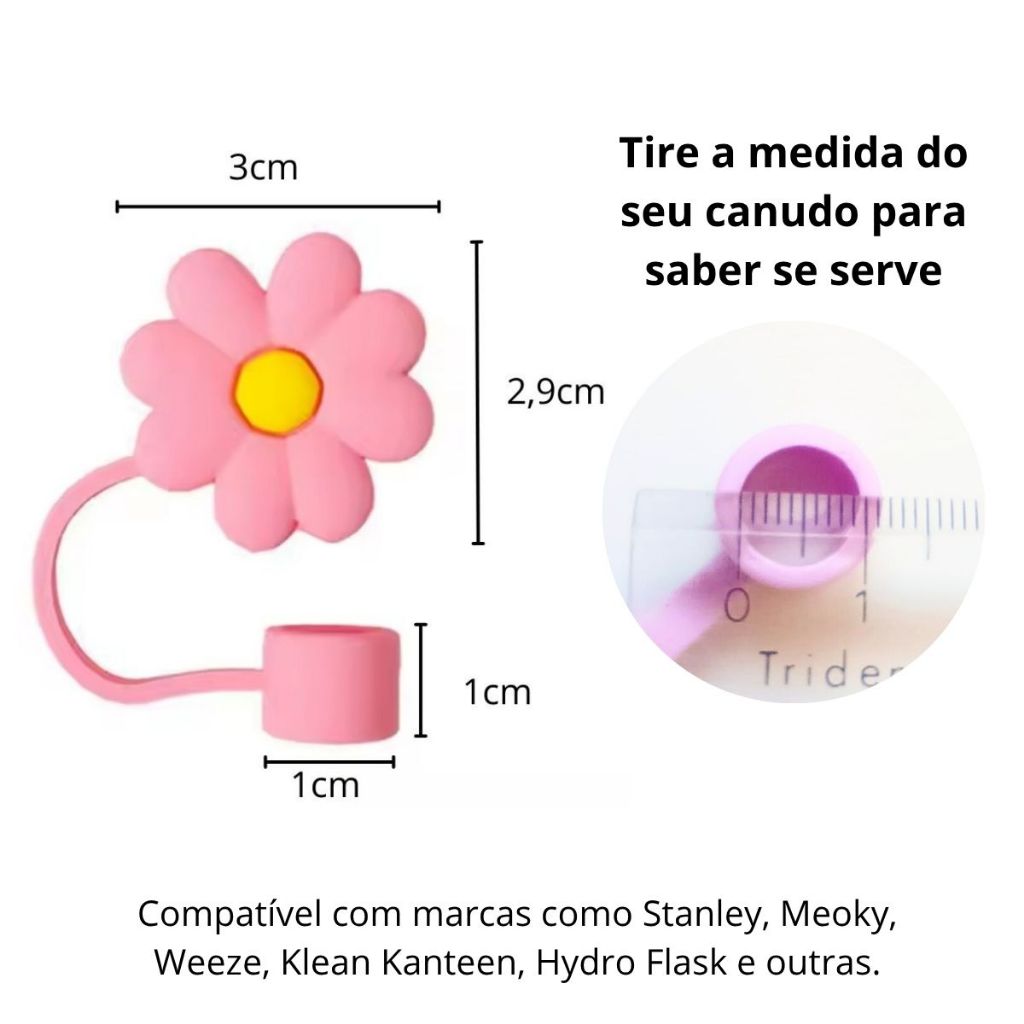 Tampa Canudo Protetora Copo Térmico Garrafa Caneca Acessório Silicone Fofo Flor Reutilizável