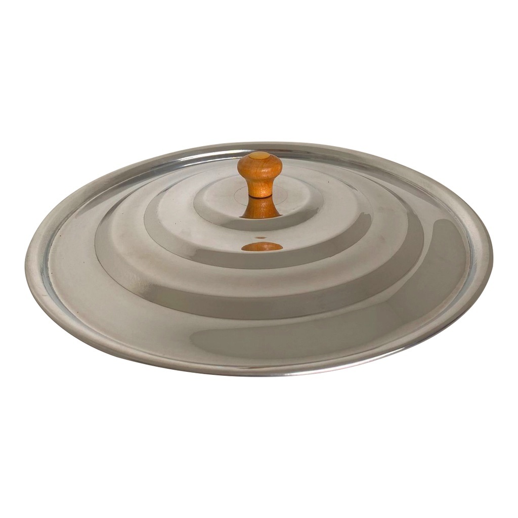 TAMPA DE ALUMÍNIO GRANDE POLIDO COM PUXADOR MADEIRA RESISTENTE