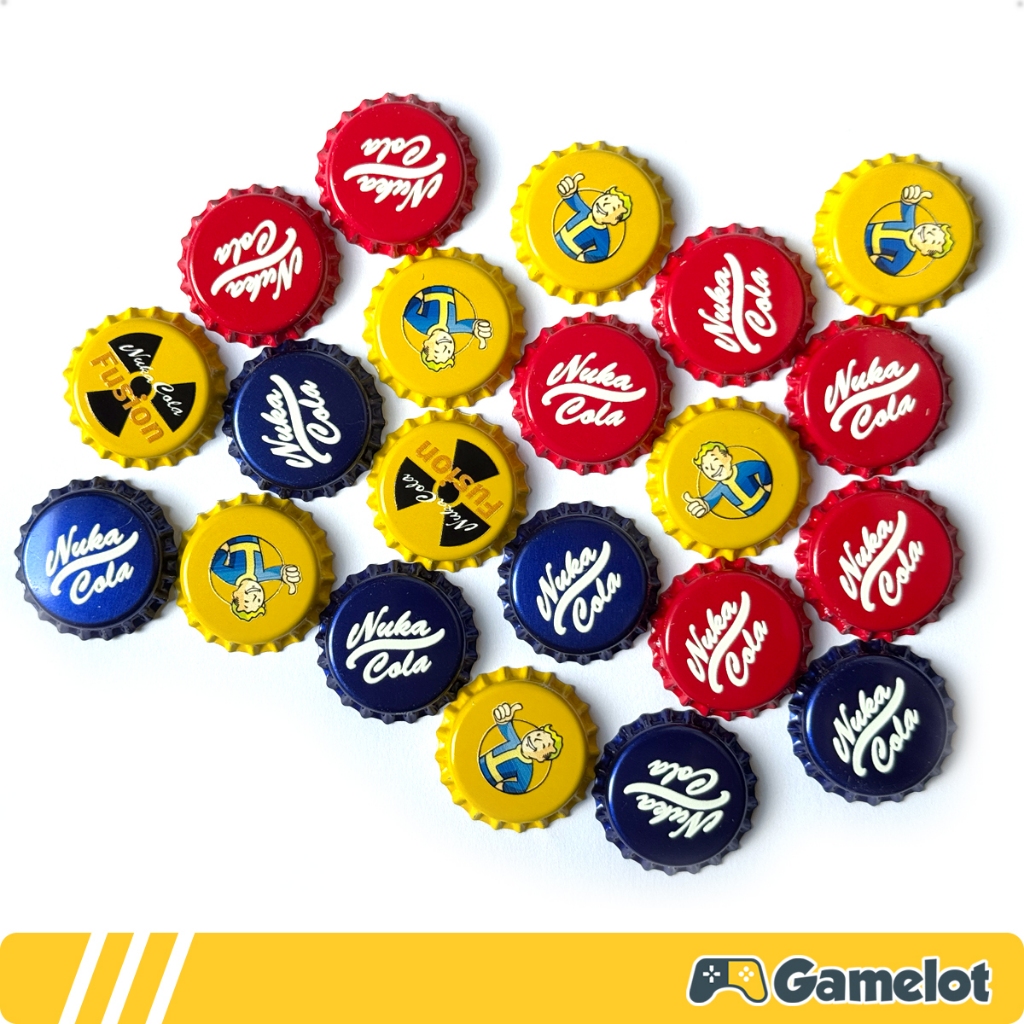Prepare seu Pip-Boy e não saia do Vault sem o essencial! Diretamente das paisagens devastadas de Wasteland para a sua coleção, apresentamos as autênticas tampinhas de Nuka-Cola, a moeda que realmente importa no mundo pós-apocalíptico de Fallout. Esqueça o dinheiro do velho mundo! Seja para comprar equipamento de um mercador em Diamond City, decorar seu assentamento ou simplesmente para ter a sensação de segurar um pedaço do universo Fallout em suas mãos, estas tampinhas são um item obrigatório. Cada tampa foi recriada com atenção aos detalhes para capturar a aparência clássica para os fãs conhecem e amam. A estampa possui relevo, o que deixa as tampinhas muito mais fantásticas para sua coleção! Disponíveis nos modelos Vault Boy, Fusion e Nuka-Cola Vermelha e Azul nas opções de 05, 10 ou 25 tampas conforme disponibilidade. Produto 100% produzido pela GAMELOT :)