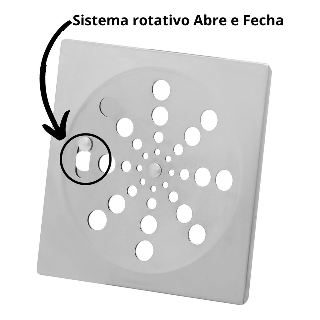 Tampa Ralo Grelha Quadrado 10cm Inox Abre/ Fecha Rotativo