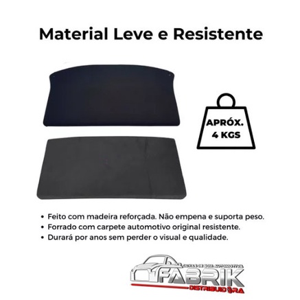 Tampão Traseiro Bagagito Porta Malas Sob Medida Liso MODELO PADRÃO DE FABRICAÇÃO, COR GRAFITE ,COM FURAÇÃO PARA ALTO FALANTES 6X9, CASO QUEIRA OUTRA COR OU SEM FURAÇAO, POR FAVOR, ASSIM QUE FINALIZAR A COMPRA ENTRAR EM CONTATO POR MENSAGEM E NÓS INFORME., OBG Se você gosta de qualidade, resistência e um belo visual para o porta-malas, esse é o tampão ideal para você. Com mais de 12 anos de experiência, a FABRIKDCAIXAS fabrica tampões de alta qualidade feitos sob medida para o seu carro. Compre agora o melhor tampão do Brasil! Características: - Tampão para cobrir a mala do seu carro. - Confeccionado com madeira certificada, ultra resistente e leve. Pesa em torno de 4kgs. - Revestimento feito com carpete automotivo de alta qualidade. Cor padronizada para seu carro. - Encaixe feito sob medida para o seu carro. Não bate, não fica folgado e fica encaixado perfeitamente na mala. - Atenção. Nao acompanha cordinhas Quais são as cores de tampão disponíveis? As principais são, GRAFITE ou PRETO. Caso deseje outra opção de cor, só nos mandar uma pergunta que verificaremos para você. Esse tampão tem furos? SIM. Esse tampão traseiro vai com furos. Se você está buscando o modelo sem furos para colocar som, nos mande uma pergunta que enviaremos para você SEM FURAÇÃO. Como coloco o tampão no meu carro? O tampão já vai com o encaixe específico para a traseira do seu carro, então basta você pegar e colocar no porta malas que ele vai encaixar perfeitamente. Nossos tampões são fabricados em corte computadorizado , valorizando o produto, cortes simétricos e Acabamento Perfeito! Utilizamos somente matérias de Primeira qualidade! Compatível com: - Mais de 150 modelos de carro. Especificações padrão: - Material: MDF 6/9mm - Revestimento: carpete cor grafite ou preto - Modelo liso - Sem altos relevos - Sem desenhos - Com furação para 6x9 Acabamento e encaixe perfeito, utilizamos o mesmo molde gabarito original de fábrica para cada veículo! - NÃO ACOMPANHA CORDINHAS - NÃO ACOMPANHA LOGOMARCA BORDADO - Todos os produtos postados em até 24h úteis. - Utilize o espaço reservado para perguntas e esclareça suas dúvidas. - Caso haja a necessidade de fazer uma troca ou devolução, antes de abrir a reclamação, entre em contato pelo campo “MENSAGEM” dentro de sua compra, para que possamos resolver da melhor forma e o mais rápido possível. - Não receba caso a caixa esteja violada. Antes de sair, os produtos são testados e lacrados. - Não se esqueça de deixar sua avaliação sobre o produto e sobre nossa loja. Isso é importante para que possamos aprimorar cada vez mais nosso atendimento. IMPORTANTE !!! Verifique a compatibilidade do produto para que não haja problemas na hora do uso! Não nos responsabilizamos por uso indevido ou instalações incorretas, Sempre recomendamos que leve a um profissional especializado! Em caso de dúvidas ou problema com o produto Sempre orientamos que vocês clientes nos chamem pelo chat em qualquer situação antes de abrir RECLAMAÇÃO! Estamos à disposição sempre, para melhor atendê-los! INFORMAÇÕES ADICIONAIS Mesmo estando dentro do prazo de 7 dias corridos do recebimento, esses produtos possuem garantia somente para defeitos de fabricação, não sendo cobertos, queima ou avaria, seja ele de qualquer natureza que não a de fabricação. Não serão aceitas devoluções de produtos avariados, queimados, riscados, amassados, por instalação, manuseio, uso ou transporte incorretos, e fora da embalagem original ou com a mesma danificada! A FABRIK D CAIXAS está à disposição, boas compras!