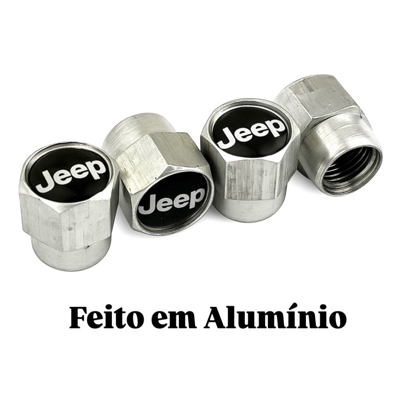 kit com 4 tampinhas em ALUMÍNIO Tampa Tampinha Bico de Pneu Compatível com carros Jeep Bico de Válvula de Compatível Pneu Jeep Pito Ventil Jeep