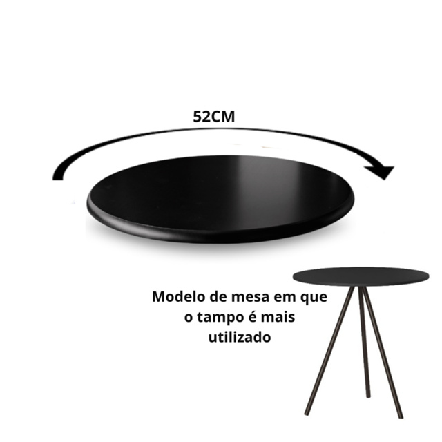 Tampo de Mesa Redondo em Madeira 52cm Trazendo um estilo moderno e industrial, o tampo de mesinha vai dar o charme que a sua decoração precisa. Podendo seu ambiente agradável e delicado, excelente para salas de estar, quartos e área gourmet. Descrições Técnicas: - O tampo tem exatamente 52cm de diâmetro - Espessura ; 15mm Conteúdo da embalagem; - 01 Tampo Redondo Cores Disponíveis: - Preto - Branco - Amêndoa - Freijó - Off - White As imagens são meramente ilustrativas. A decoração não acompanha o produto. Obs.: Produto pronto para uso. Não necessita de montagem.