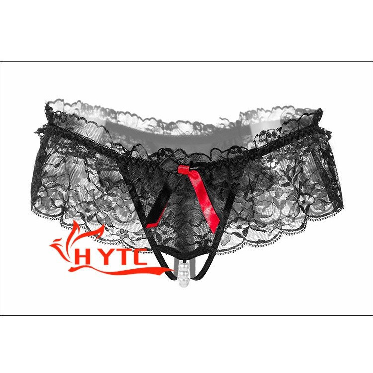 Tanga de Massagem Sexy Transparente com Pérolas e Renda Dividida 2ZT3 TYLF GSPL