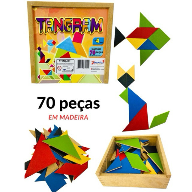 Tangram 70 Peças em Mdf Brinquedo Jogo Educativo Formas Geometricas Pedagógico Lúdico Madeira Quebra Cabeça Chinês