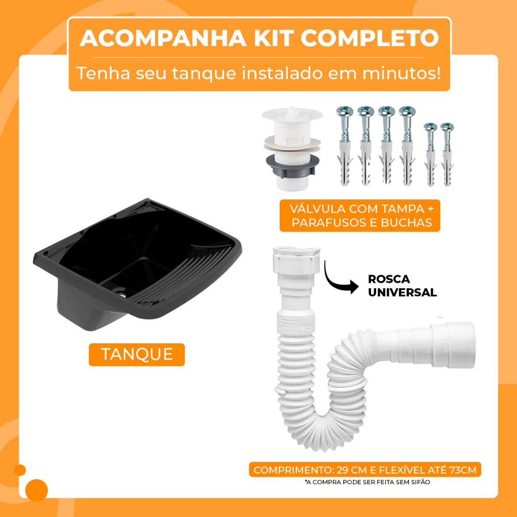Tanque 37L com Kit Instalação Completo Sifão Veda Rosca Pia Lavanderia Lavar Roupa Reforçado Metasul