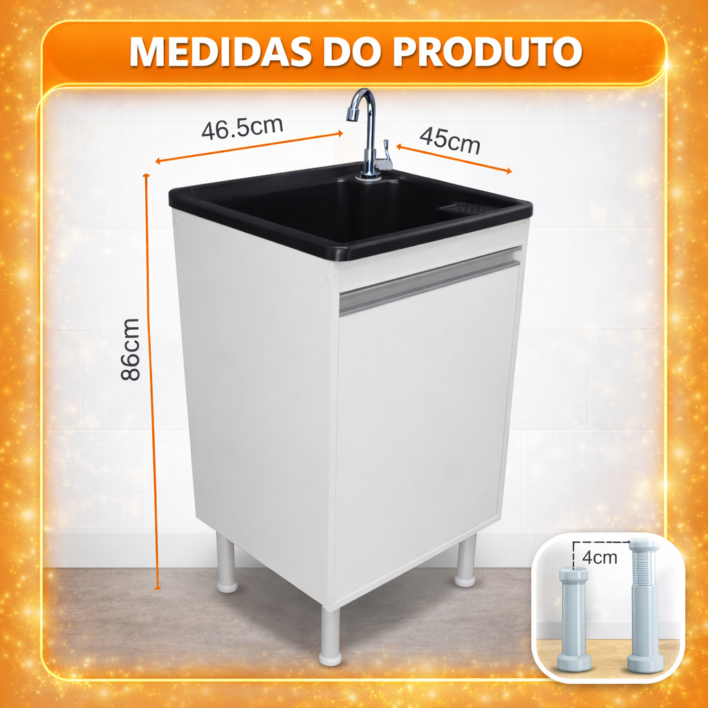 Tanque de Lavanderia 26L com Torneira de Bancada e Gabinete 100% MDF