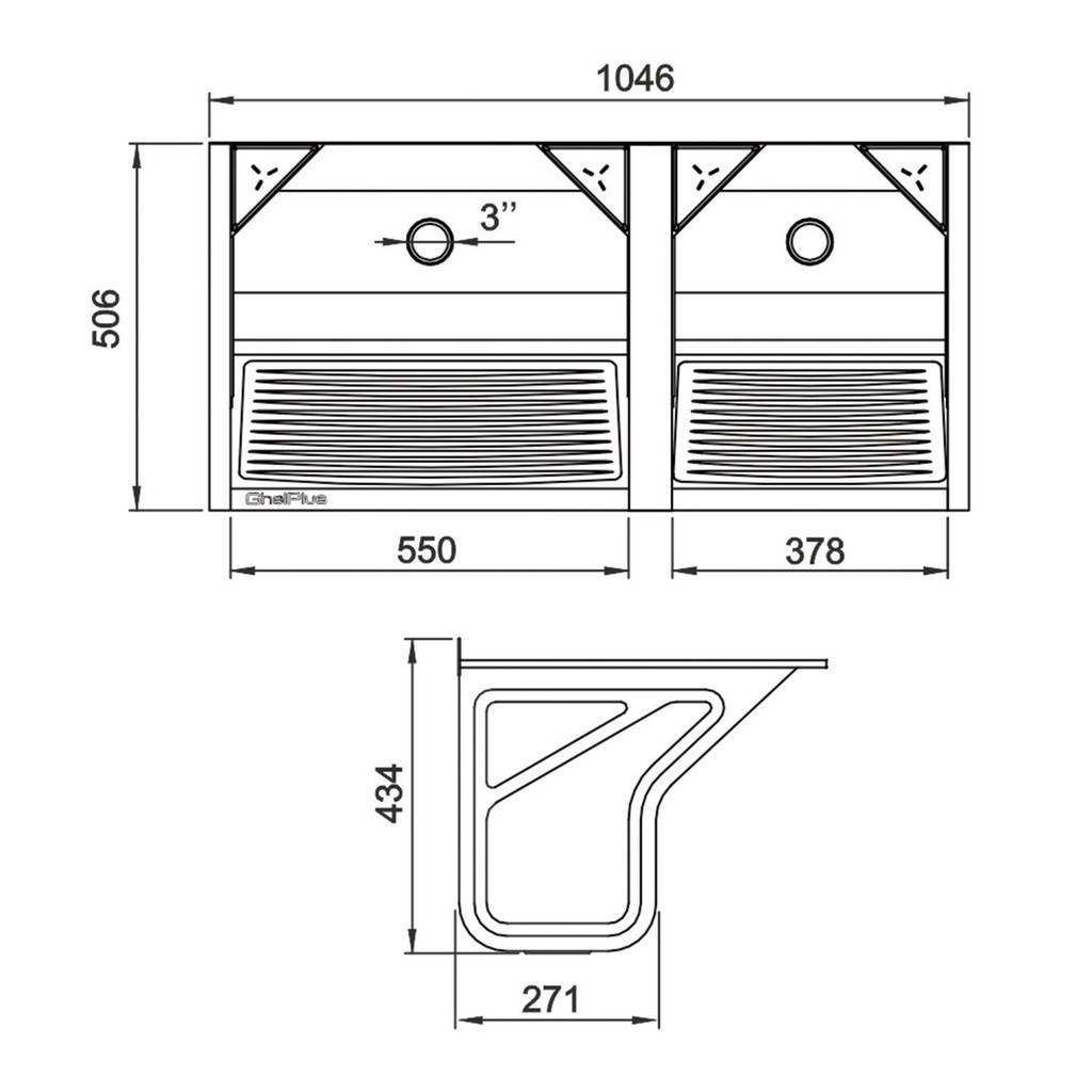 Tanque Duplo Super em Aço Inox 104x50,6cm 114 Litros GhelPlus