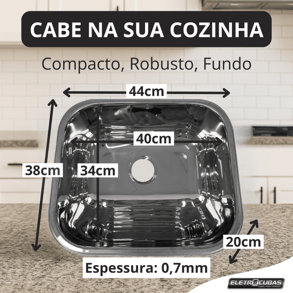 | Tanque Inox Eletrocubas Brilho 40x34x20 18l Sobrepor Embutir este produto | R$ 199,84 | 20% | 5.0/5 | — |