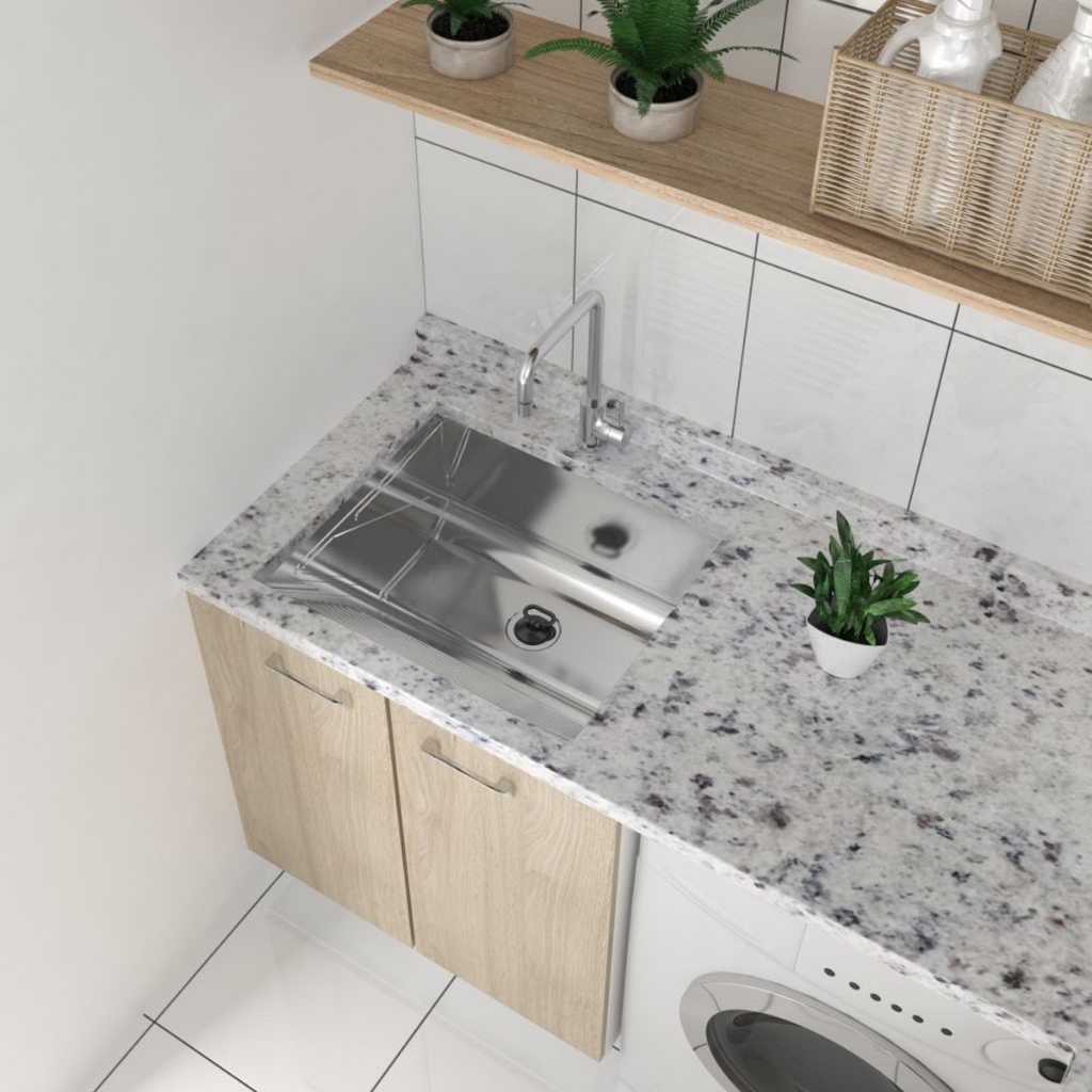 **CASO SUA COMPRA SEJA MAIS DO QUE UMA PEÇA, FAVOR COMPRAR SEPARADAMENTE** Tanque Inox com 48 litros de capacidade. Modelo específico para embutir. Produto amplo e funcional!! • Conta com acabamento nos frisos que terminam em ângulo 0º evitando acúmulo de água ou sujeira. ACESSÓRIOS INCLUSOS: Válvula ESPECIFICAÇÕES: Marca: Solo Modelo: Embutir Furo de Válvula: 3" polegadas (acompanha Válvula) Capacidade: 48 Litros Comprimento: 60,8 cm Largura: 53,6 cm Altura do Tanque: 26,5 cm Material: Aço Inox 430 Cuidados e Manutenção: Para garantir a longevidade do seu tanque, limpe-o com água, um pano macio e sabão neutro. Após a limpeza, deixe a peça seca. Evite produtos abrasivos como palha de aço, polidores de metais e produtos à base de cloro ou hipoclorito. • Imagens Ilustrativas: A cor real pode variar devido à iluminação do ambiente e configurações do monitor.