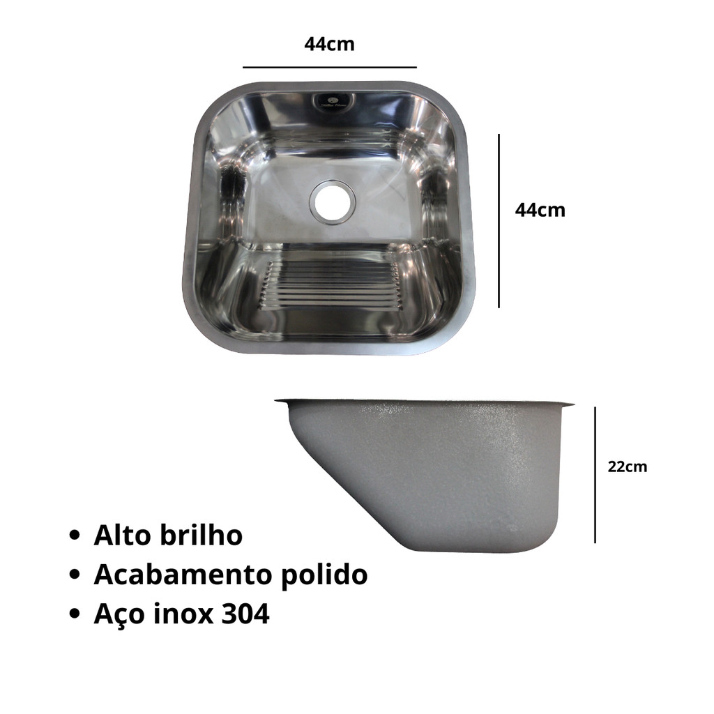 Tanque Lavanderia Polido 44x44 Aço Inoxidável 304 Premium