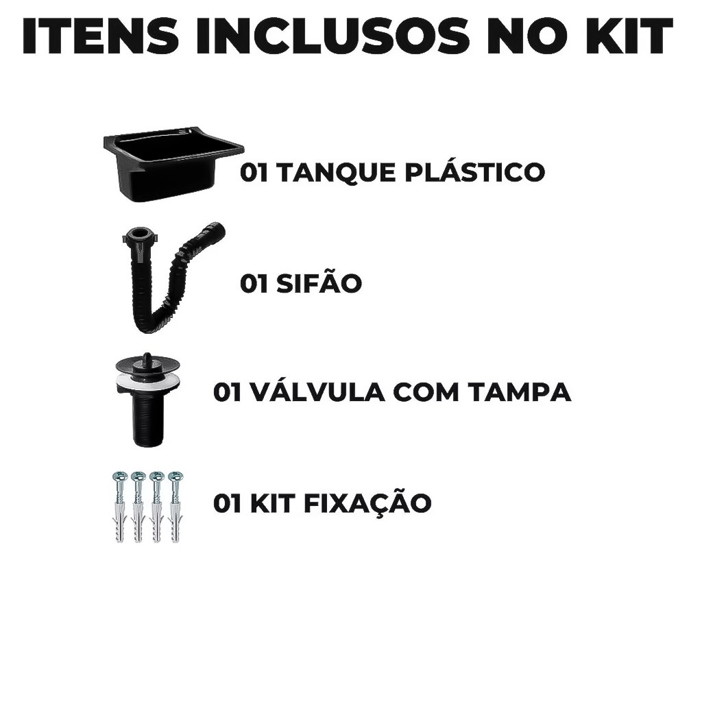 Tanque Plástico Para Lavanderia 22L Com Sifão E Válvula Universal Pia Completa Compacta ASTRA