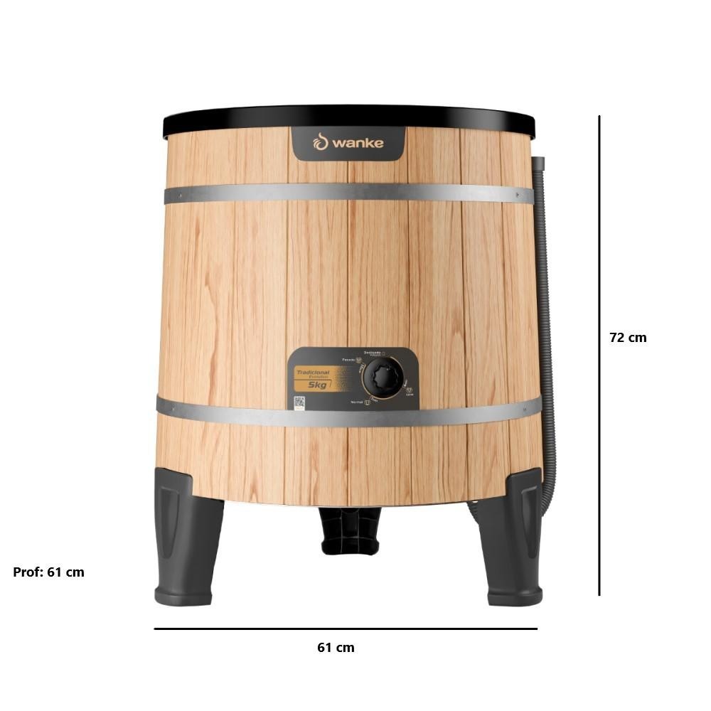 A Lavadora tradicional da Wanke tem mais de 50 anos de tradição e com a inovação destes últimos tempo, vem satisfazendo as donas de casa. Com um design retrô, a lavadora tem gabinete confeccionado em madeira proveniente de reflorestamento, tratada com impermeabilizante e revestida com verniz natural, o seu painel quanto o tanque interno são em polipropileno, que impedem o contato da água com a madeira. Ideal para a lavagem de roupas muito sujas, com um agitador em formato de pás, os relevos no gabinete interno ajudam no processo de lavagem! Especificações: - Comprimento: 61 cm - Largura: 61 cm - Altura: 72 cm - Voltagem: 127v - Potencia: 470 W - Cor: Claro - As configurações do seu monitor ou dispositivo móvel podem afetar a tonalidade da cor do produto. Conferir na descrição. - Recomendação de Limpeza: Limpar com pano seco para retirar o pó. Não aplicar produtos abrasivos. - Produtos de Enfeite e Eletrônicos Não Estão Inclusos.
