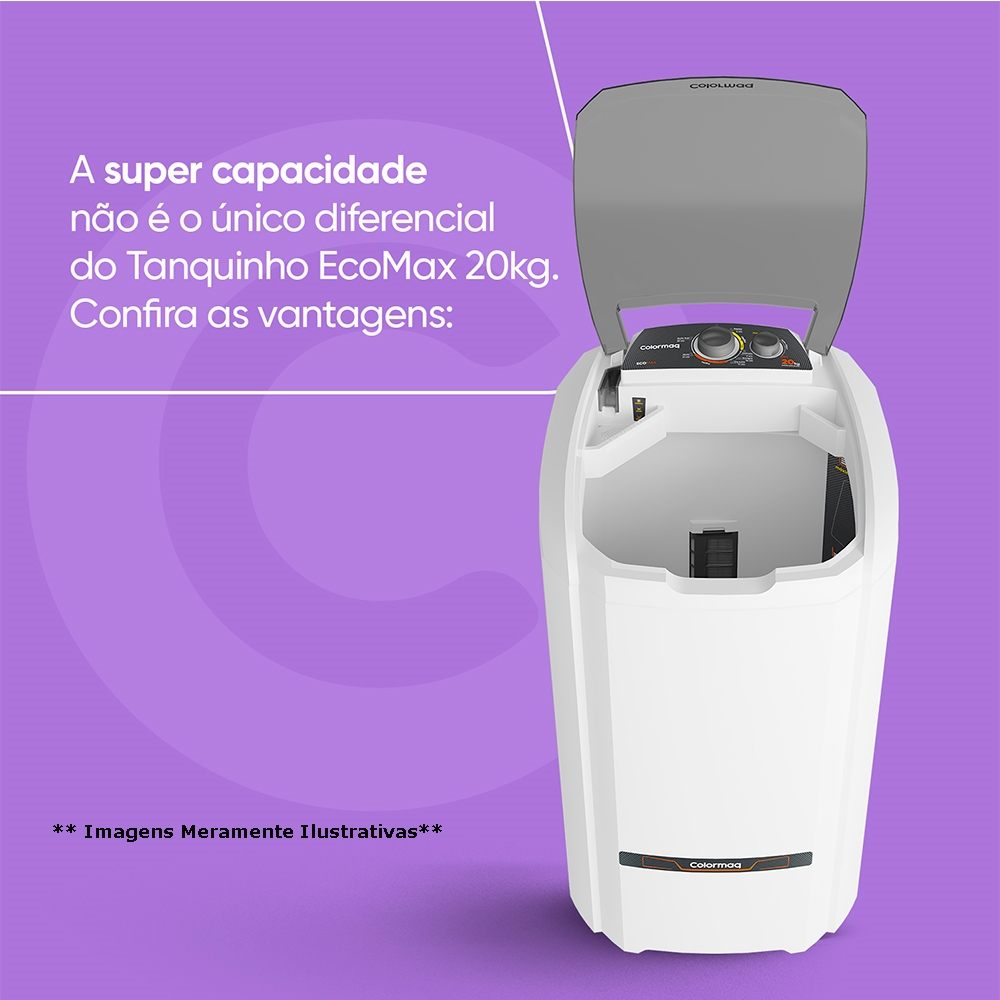 Tanquinho/Máquina de Lavar Roupas Semi-automática 20Kg LCS | Colormaq Ecomax, Prata