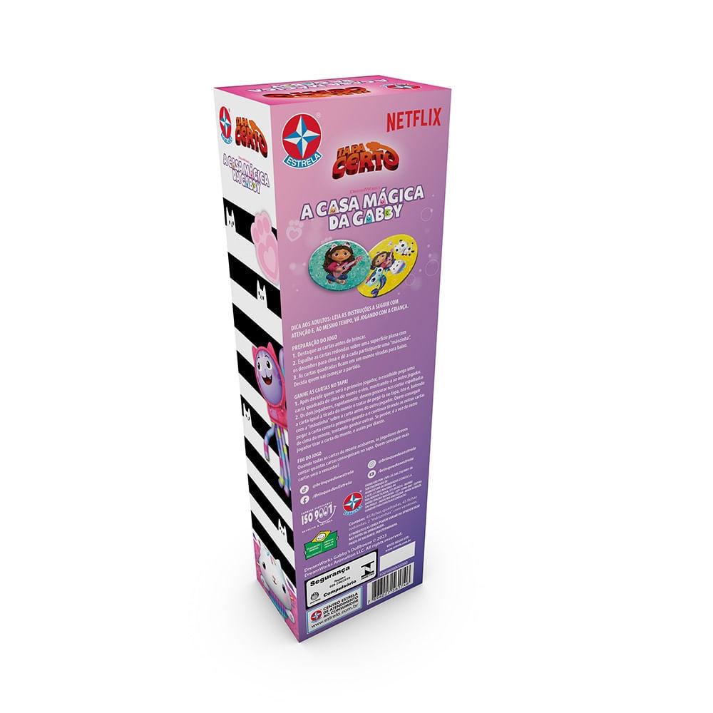Tapa Certo a Casa Mágica da Gabby - Estrela Uma versão do clássico Tapa Certo com os personagens da série de grande sucesso entre as crianças A Casa Mágica da Gabby. O jogo funciona da seguinta maneira: as cartas quadradas ficam viradas para baixo enquanto as cartas redondas ficam viradas para cima. Um jogador deve virar uma carta quadrada, revelando sua imagem, e os jogadores devem rapidamente dar um tapa na carta redonda de mesma imagem utilizando suas mãozinhas plásticas. Quem conseguir mais cartas no final do jogo é o vencedor! Selo Inmetro: 009 246/2019