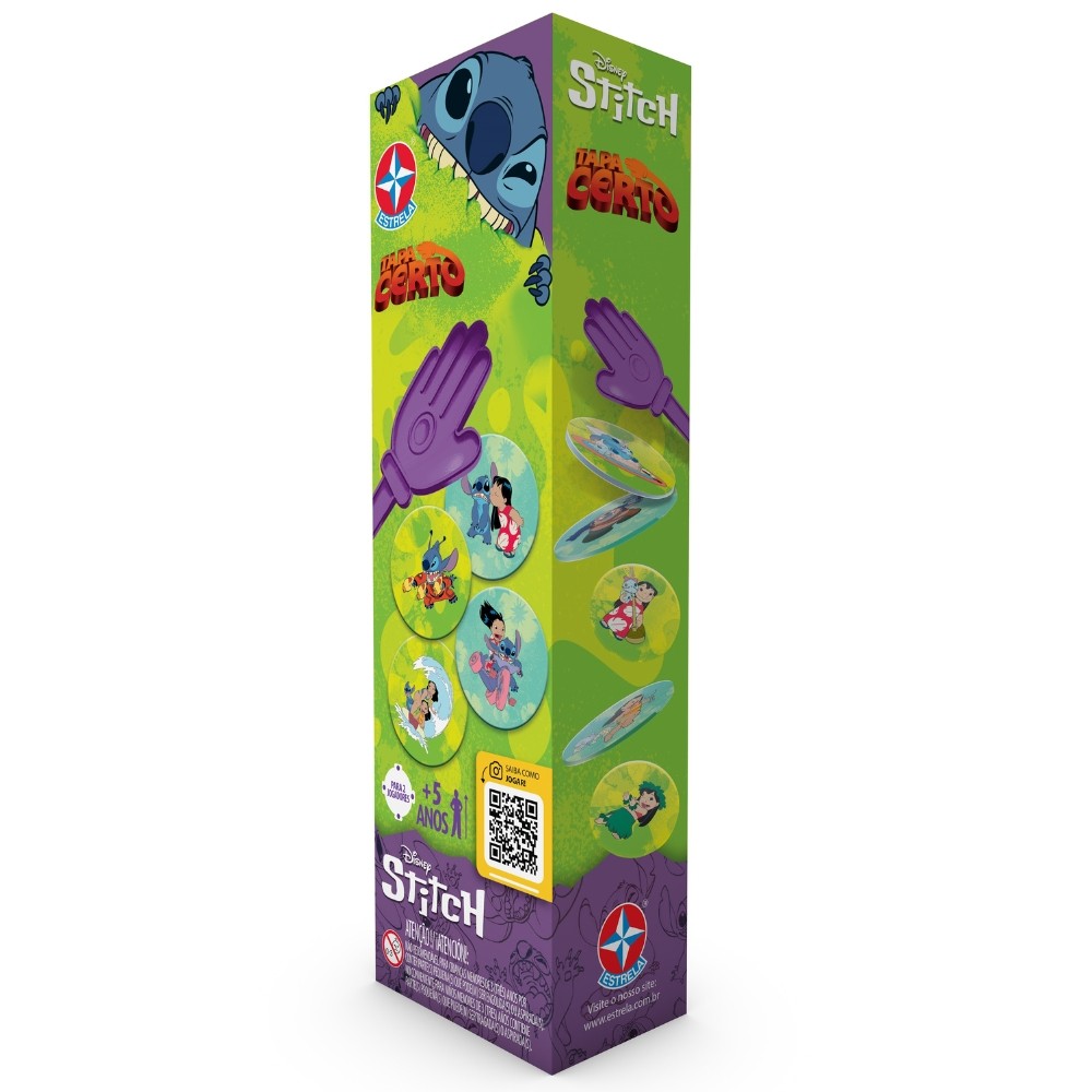 ***PRODUTO ESTRELA EM PORTUGUÊS ORIGINAL, OFICIAL, LACRADO E COM NOTA FISCAL*** TAPA CERTO DISNEY STITCH ESTRELA MÃOZINHA CARTA FAMÍLIA MESA LILO ANGEL BICHO ROSA AZUL FILME BONECO Informações Técnicas: - Material: Plástico - Contém: 2 "mãozinhas" com ventosa, 45 cartas redondas e 45 cartas quadradas. - EAN: 7896027563375 - Produto certificado REGISTRO: 009 246/2019 - Peso 220g - JOGO - Idade: 5+ ANOS - De 2 jogadores - Tempo estimado de jogo: 30 minutos - Marca: ESTRELA - Garantia: Contra defeitos de fabricação - Prazo de Validade: Indeterminado Obs: O produto e as cores podem variar do apresentado nas fotos da embalagem. Imagens meramente ilustrativas! ATENÇÃO! NÃO RECOMENDÁVEL PARA CRIANÇAS MENORES DE 3 (TRÊS) ANOS POR PODER GERAR PARTE(S) PEQUENA(S) QUE PODE(M) SER ENGOLIDA(S) OU ASPIRADA(S). Descrição do produto O clássico Tapa Certo, agora com o Stitch e seus amigos alienígenas. As cartas quadradas ficam viradas para baixo enquanto as cartas redondas ficam viradas para cima. Um jogador vira uma carta quadrada revelando a imagem, e rapidamente os jogadores devem dar um tapa com sua mãozinha plástica na carta redonda de mesma imagem. DICA AOS ADULTOS: LEIA AS INSTRUÇÕES A SEGUIR COM ATENÇÃO E, AO MESMO TEMPO, VÁ JOGANDO COM A CRIANÇA. PREPARAÇÃO DO JOGO 1. Destaque as cartas antes de brincar. 2. Espalhe as cartas redondas sobre uma superfície plana com os desenhos para cima e dê a cada participante uma "mãozinha". 3. As cartas quadradas ficam em um monte viradas para baixo. Decida quem vai começar a partida. GANHE AS CARTAS NO TAPA! 1. Após decidir quem será o primeiro jogador, o escolhido pega uma carta quadrada de cima do monte e vira, mostrando-a ao outro jogador. 2. Os dois jogadores, rapidamente, devem procurar nas cartas espalhadas a carta igual à tirada do monte e tratar de pegá-la no tapa, isto é, batendo com a "mãozinha" sobre a carta antes do outro jogador. Quem conseguir pegar a carta correta primeiro guarda-a e continua tirando as outras cartas de cima do monte, tentando ganhar outras. Se perder, é a vez do outro jogador tirar a carta do monte, e assim por diante. FIM DO JOGO Quando todas as cartas do monte acabarem, os jogadores devem contar quantas cartas conseguiram no tapa. Quem conseguir mais cartas será o vencedor! --------------------------------------------------- SEJA MUITO BEM VINDO(A) A LOJA DE BRINQUEDOS DO CANAL 40 POR QUÊ COMPRAR NA LOJA DE BRINQUEDOS DO CANAL 40? *Enviamos seu pedido sempre no mesmo dia ou no máximo no próximo dia útil dependendo do horário da sua compra! *Produtos lacrados, originais e oficiais da mais alta qualidade; *Experiência única de compra (incluindo a experiência olfativa - você sentirá nosso cheiro); *Todos os nossos produtos estão à pronta entrega em nosso estoque físico aqui no Brasil; *Seu pedido será enviado com segurança e agilidade; IMPORTANTE: Tenha tranquilidade de comprar com quem está disposto a te oferecer o melhor atendimento, caso tenha algum problema após a compra, conte com nossa equipe de pós venda para solucioná-lo! A LOJA DE BRINQUEDOS DO CANAL 40 tem a missão de garantir a satisfação total do seu cliente, tanto nos produtos quanto no atendimento. Assim estabelecemos uma relação única de confiança! Não encontrou o que procurava? Clique na foto da nossa logo para entrar em nossa loja e ver todos os nossos produtos OU nos mande uma mensagem diretamente aqui pelo chat. SERÁ UM PRAZER ATENDÊ-LO(A)! --------------------------------------------------- MUITO PRAZER, ME CHAMO FELIPE CAMARGO, SOU DONO, CEO E CRIADOR DE CONTEÚDO DO CANAL 40. DESDE JÁ, DEIXO AQUI O MEU MUITO OBRIGADO!!! CANAL 40 - LOJA DE BRINQUEDOS LTDA DEIXE SUA CRIANÇA INTERIOR FELIZ E APROVEITE!